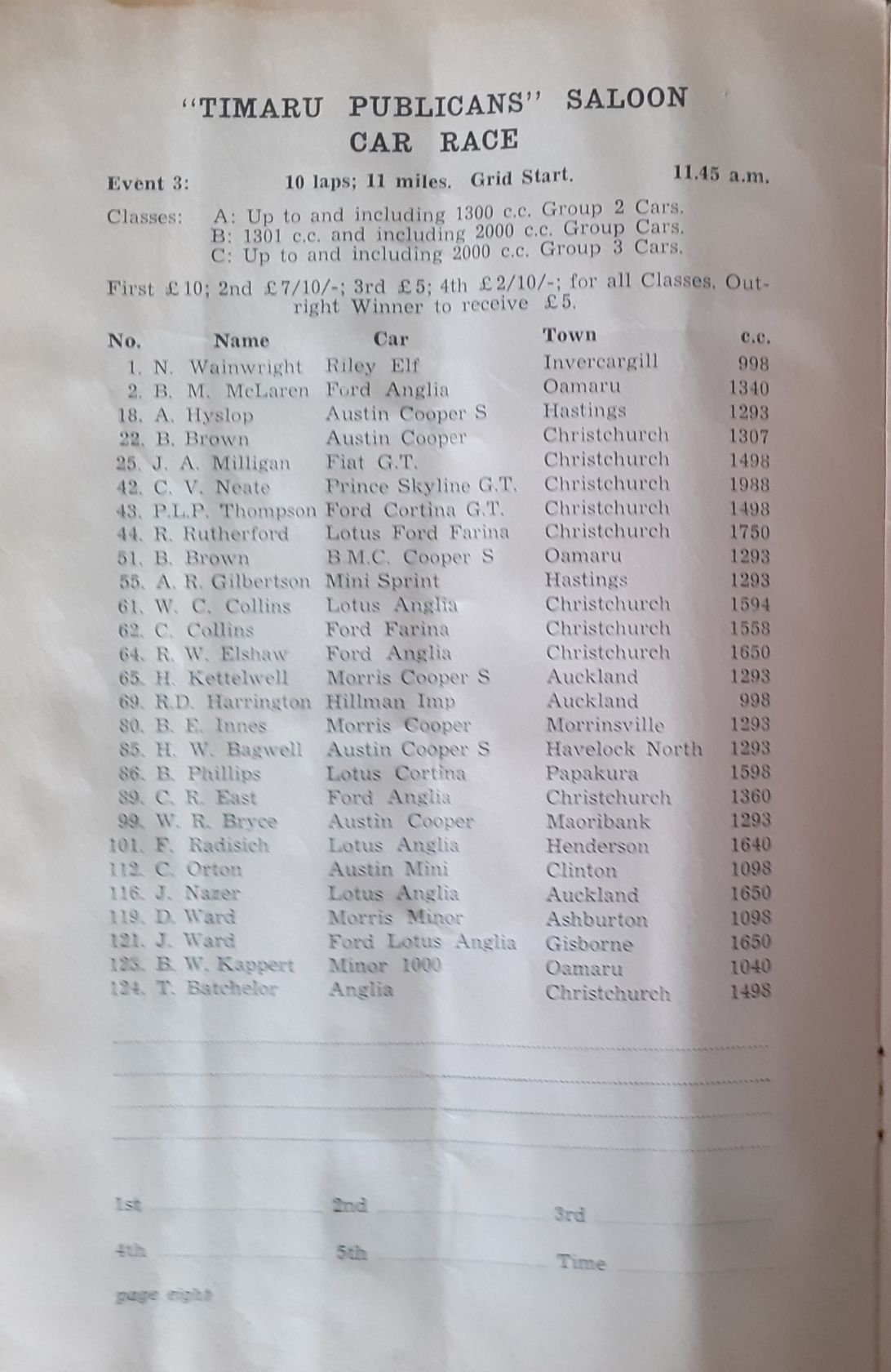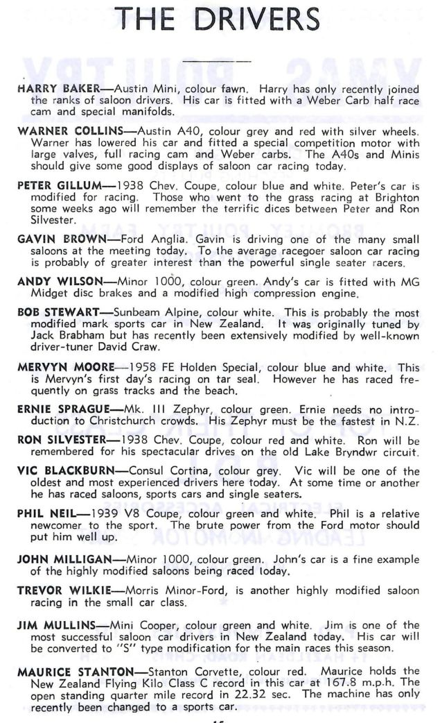 Timaru Trophy Road Race 4 February 1967 A bit more - including more Entry Lists
