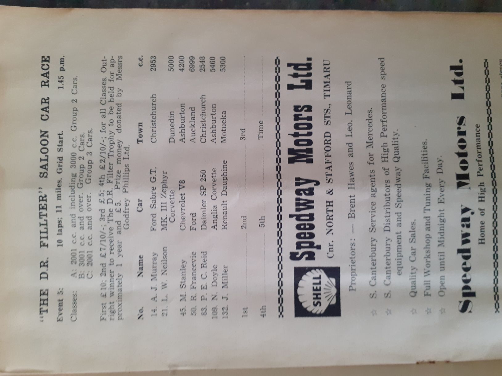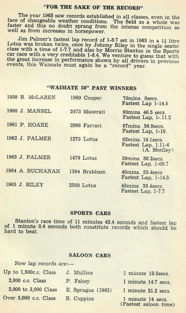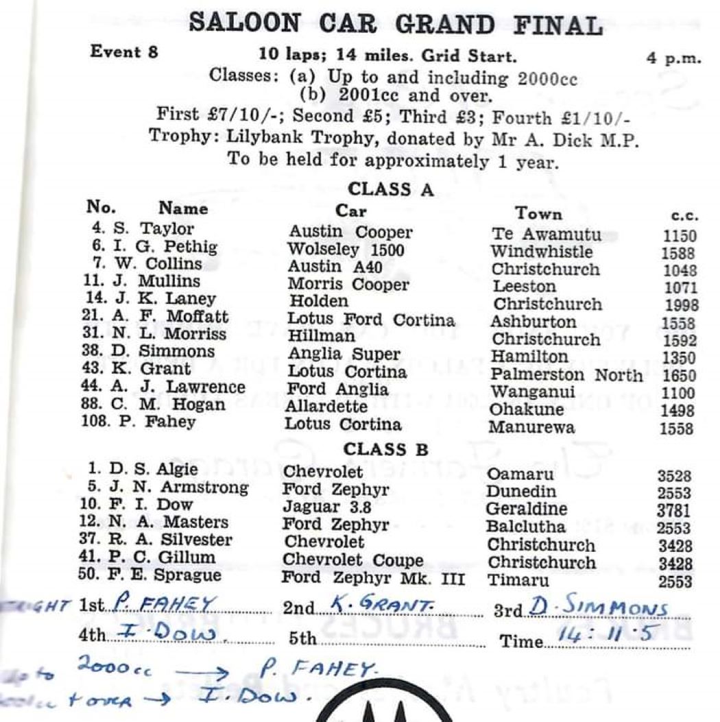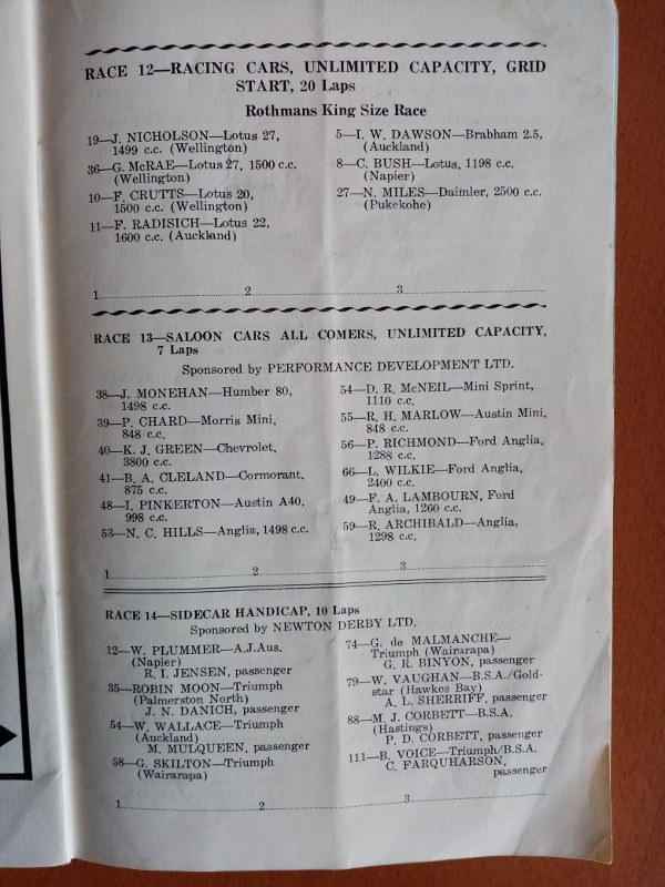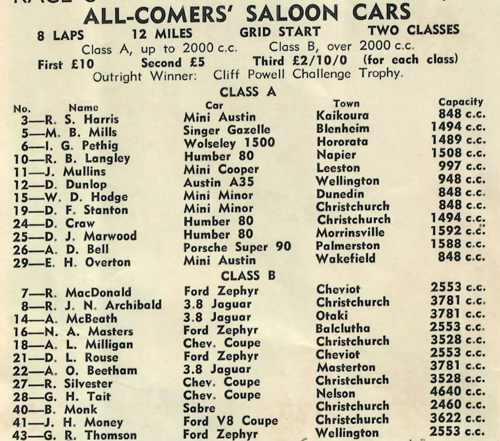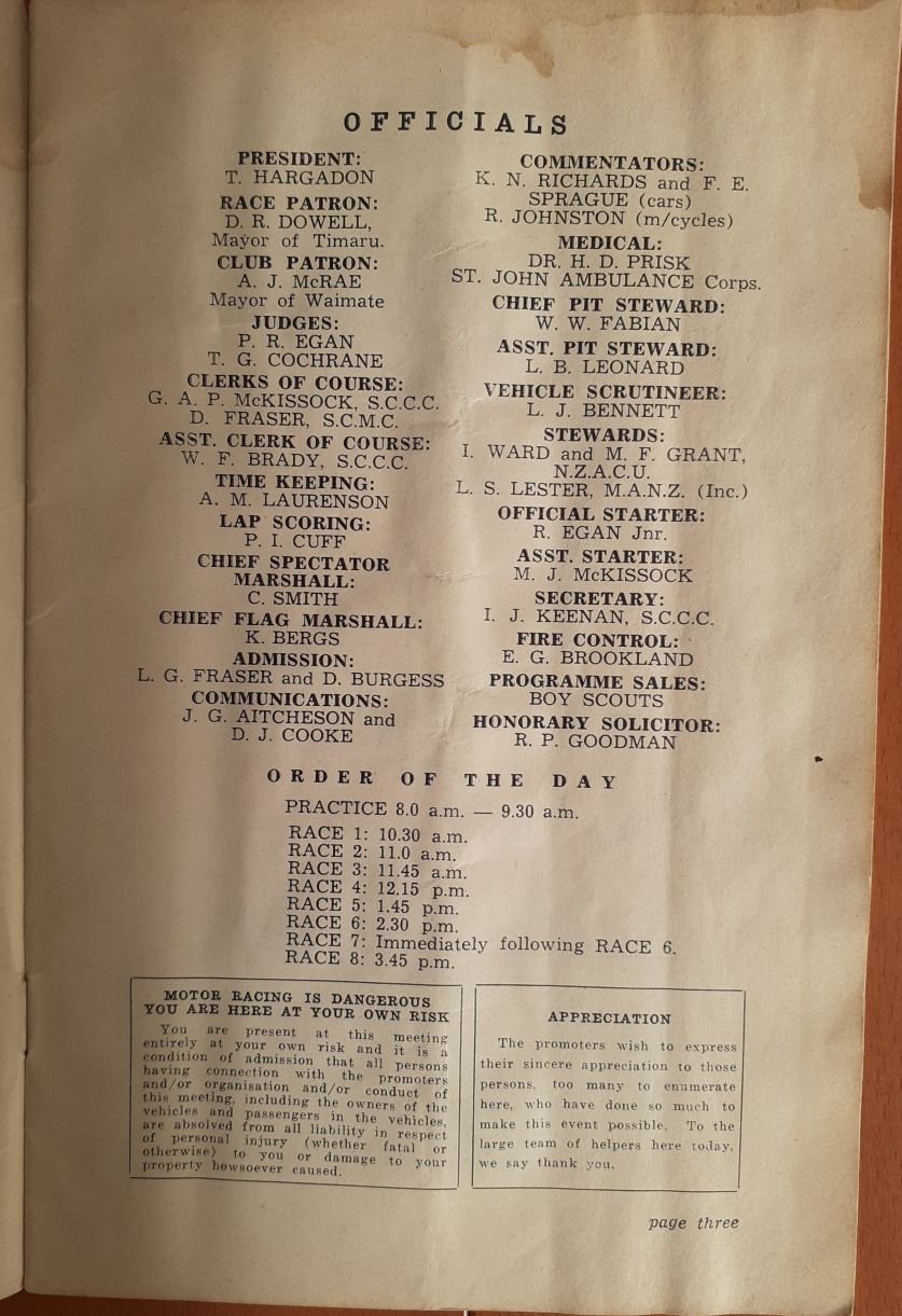 I have had the Programme for the 1950 NZCRR Event for many years - a gift from SpGeti Bruce Dyer.