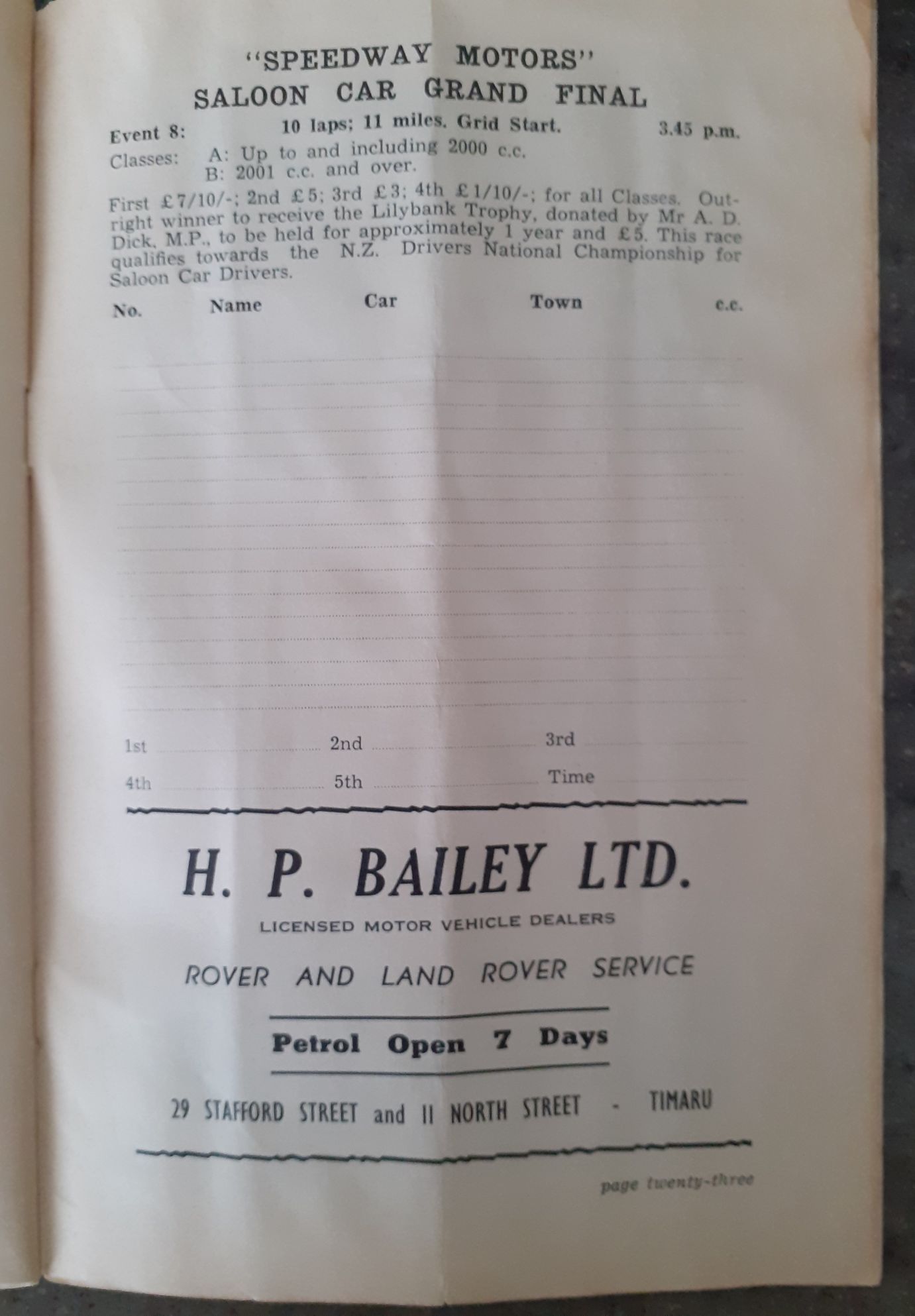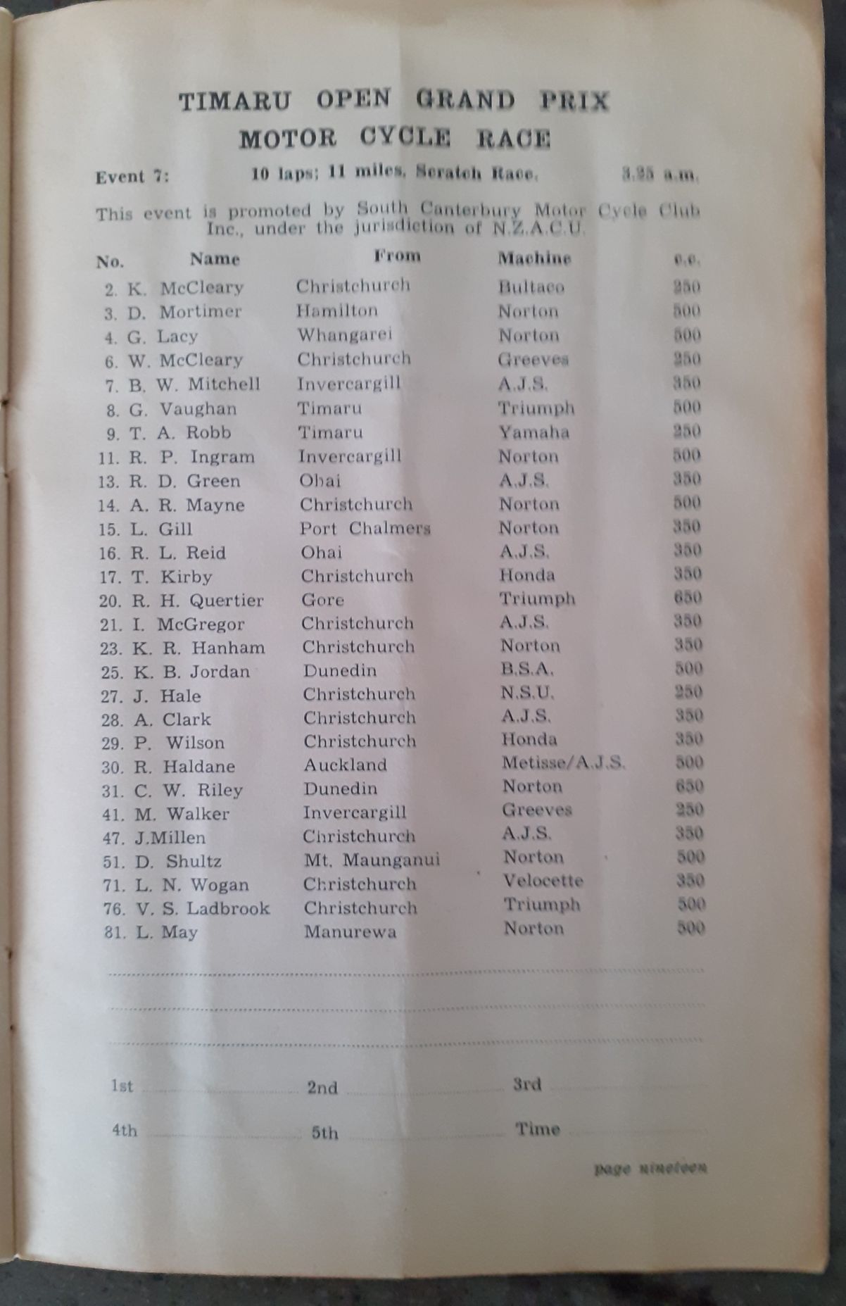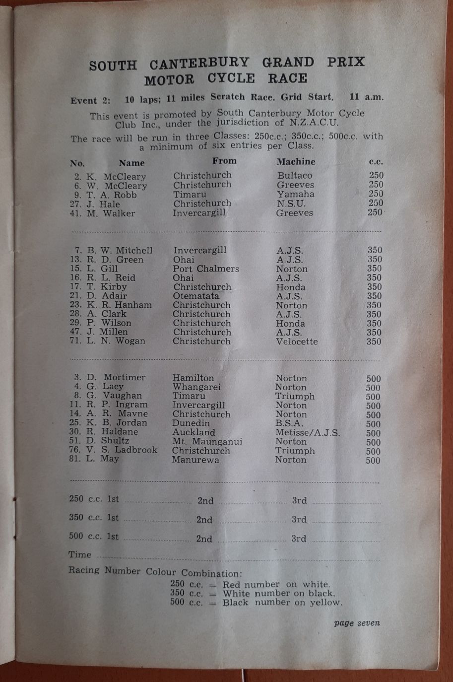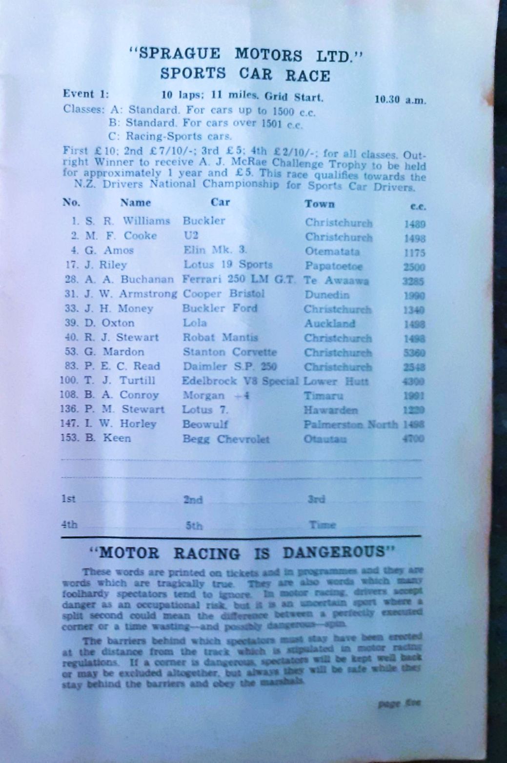 I have had the Programme for the 1950 NZCRR Event for many years - a gift from SpGeti Bruce Dyer.