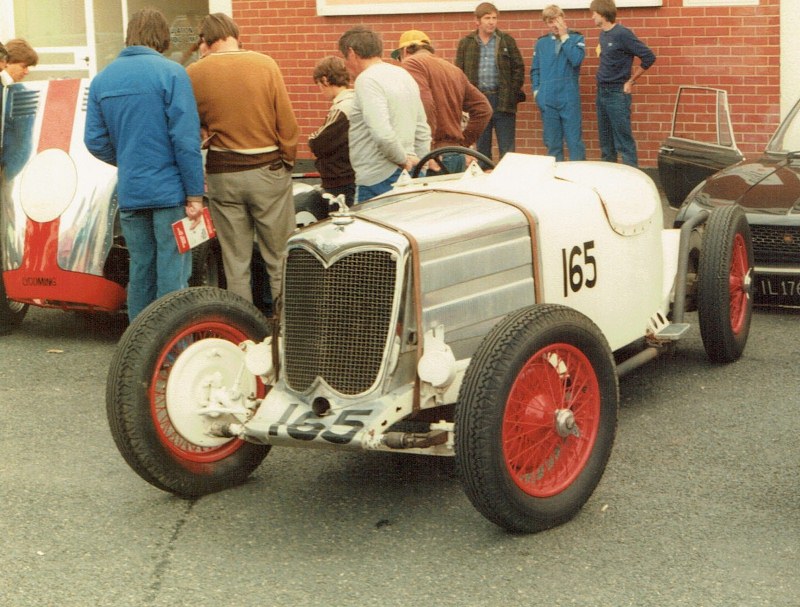 Bruce Pidgeon drove the Ransley Riley model 1, a Brooklands style car at the 1984 Historics meeting Race #165.