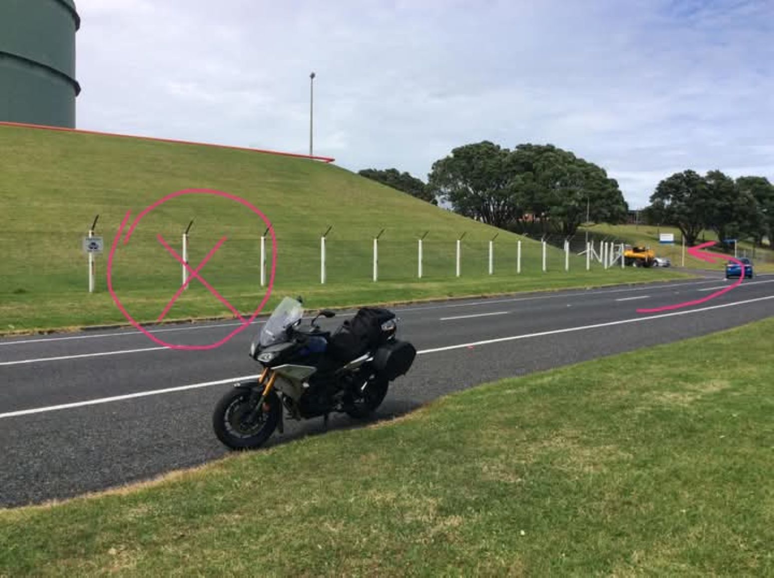 Where this happened - the road / track the car had just rounded the corner.