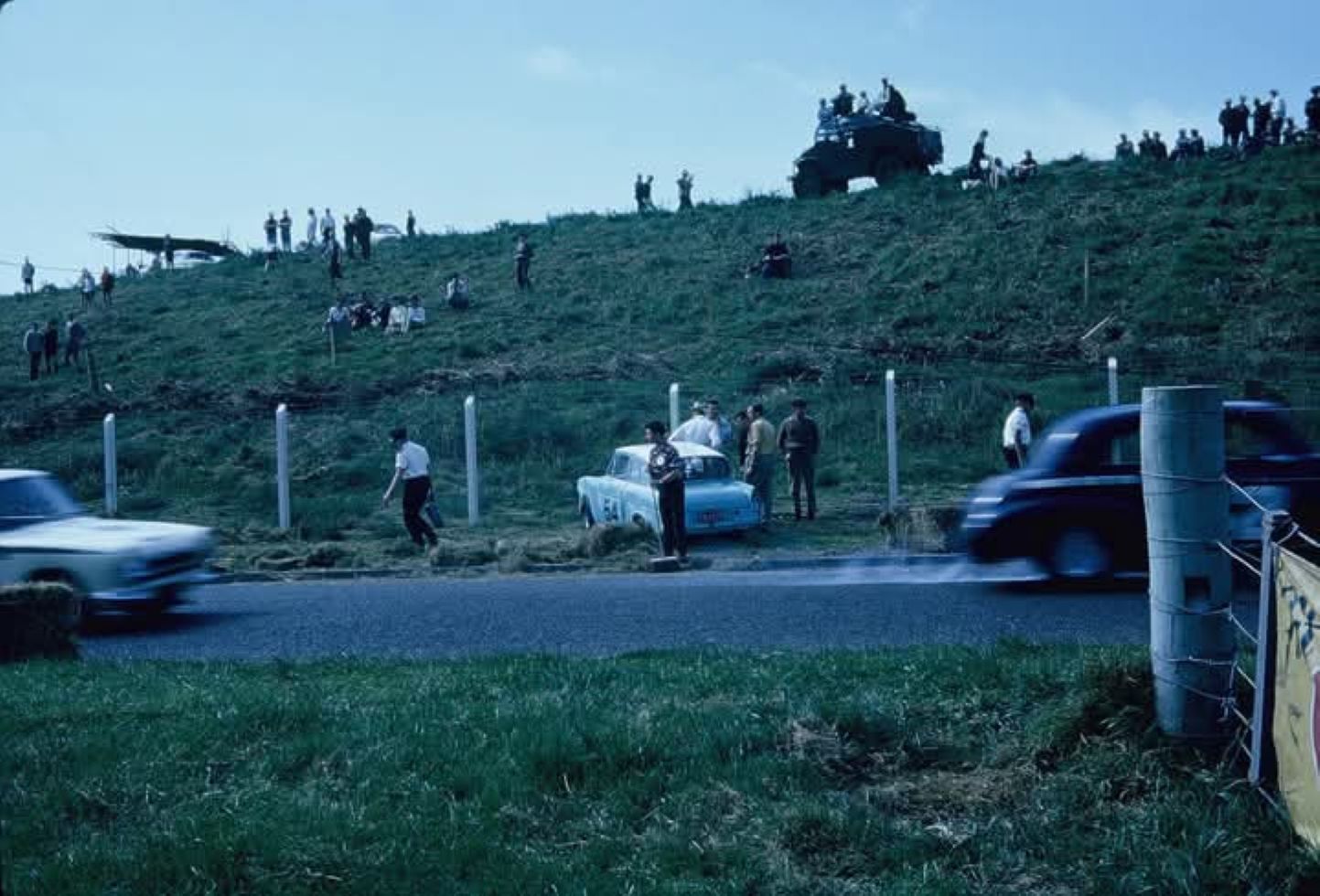 Another fellow in Blue Overalls that day was Neil Ferguson from Waiau who ran a pale blue Austin Healey 100.