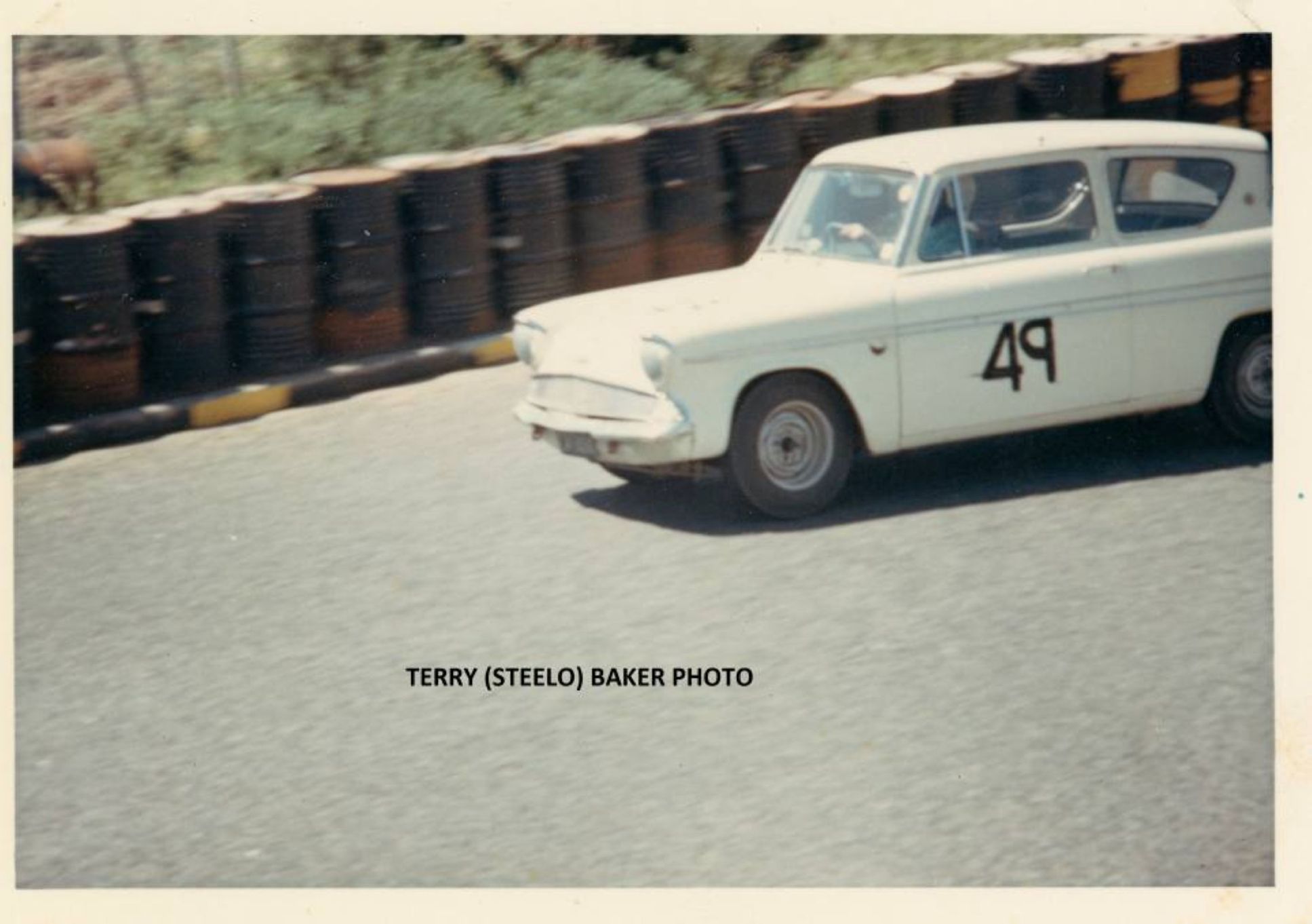 Craig Pidgeon Bruce's son who is into current Historic / Classic racing has these two pictures of Bruce and the Car on the Circuit.