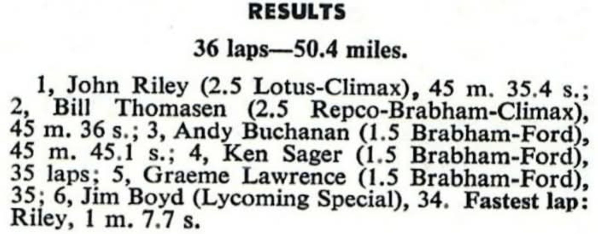 - like most races on the day it was over 10 Laps, 11 Miles with a Grid Start. Running 3 Classes as noted