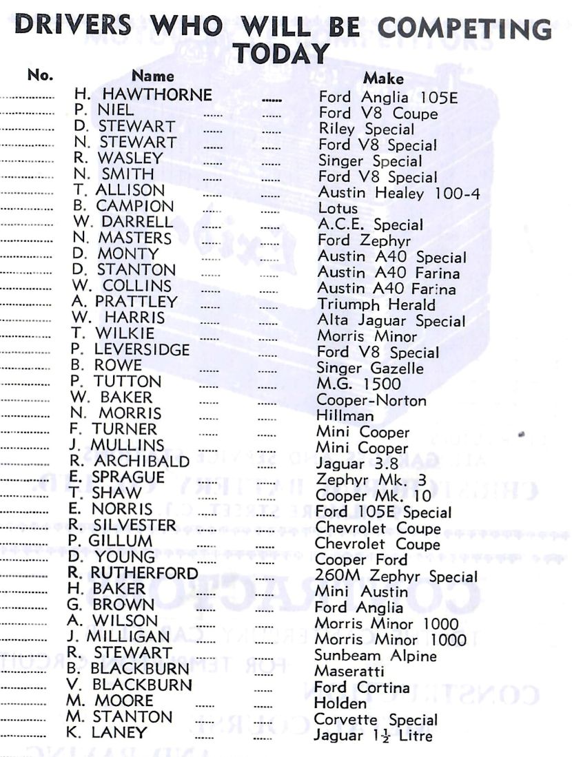 Lots of Motorsport names among the Officials - and Entrants / Drivers and even Sponsors Advertisers.