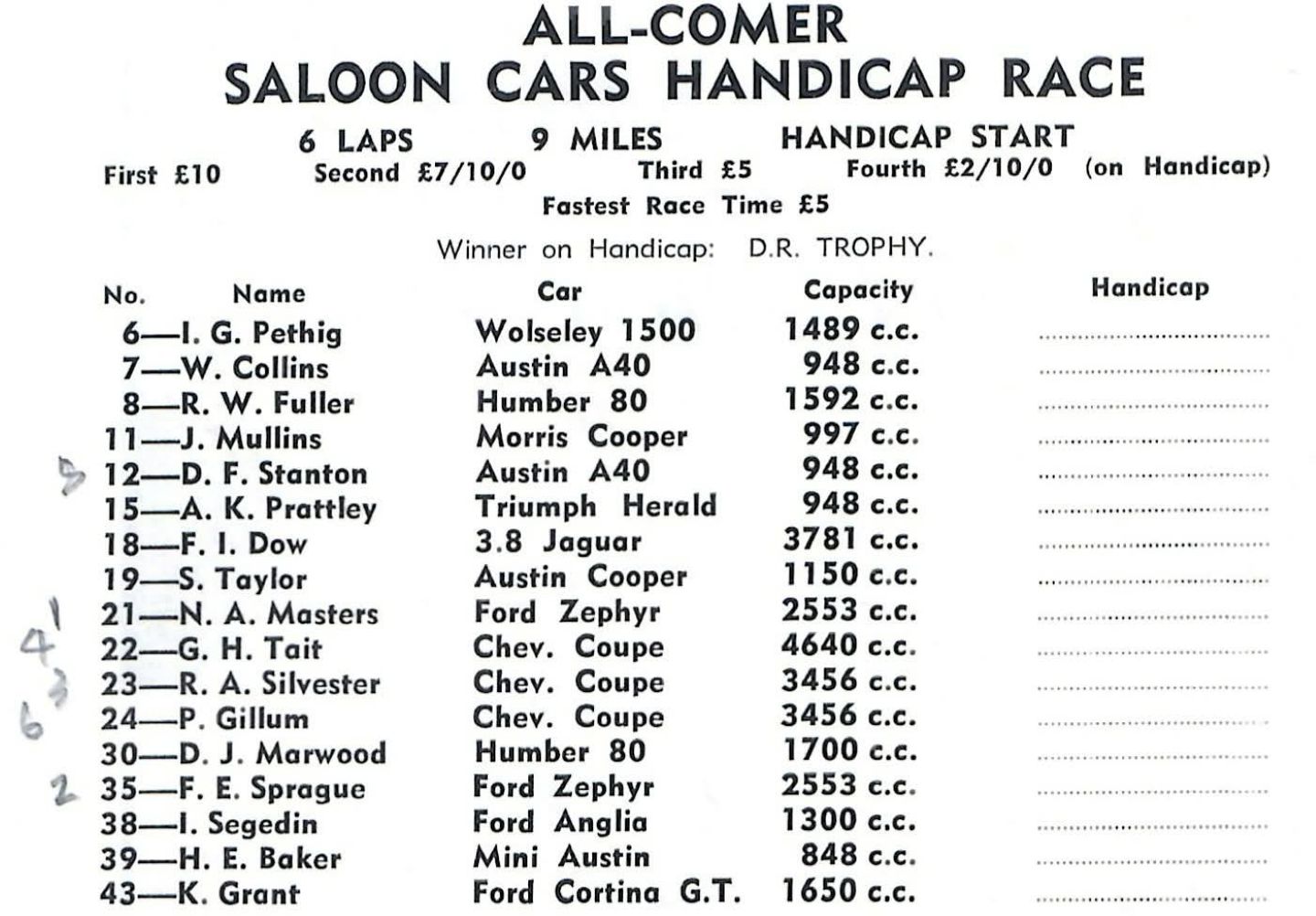 1963 All-Comer Saloons, a Handicap Race, all capacities.