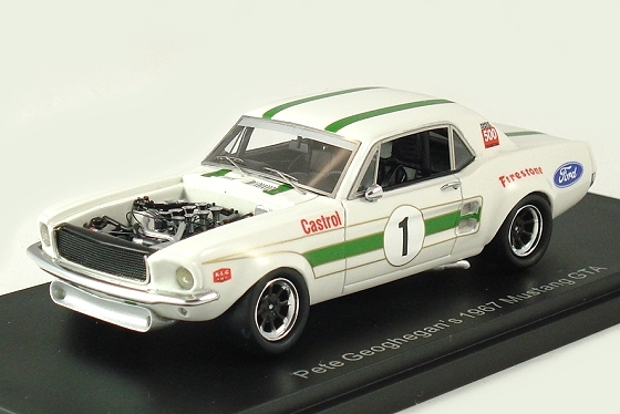 This is a high-quality 1:43rd resin model of Ian 'Pete' Geoghegan's #1 1967 Ford Mustang GTA, winner of three Australian Touring Car Championships.