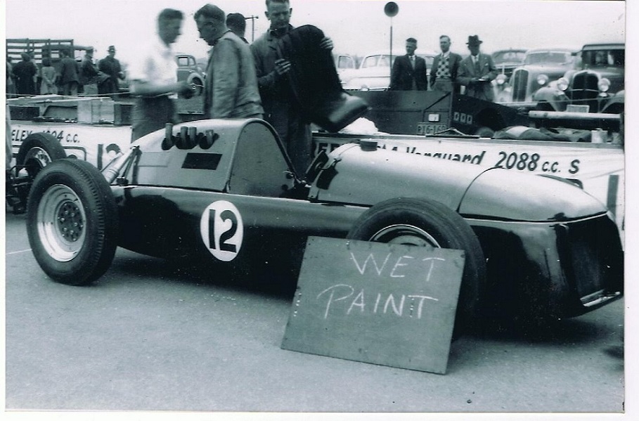 The RA Vanguard first saw the light of day at the 1950 (or 51?) Wigram meeting where it was displayed unfinished with a wet paint sign beside it.