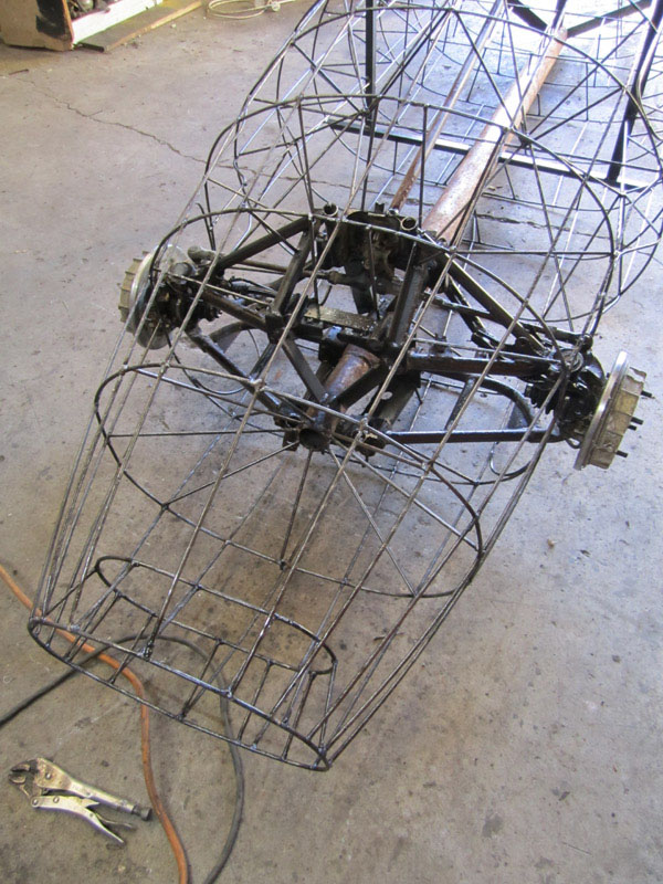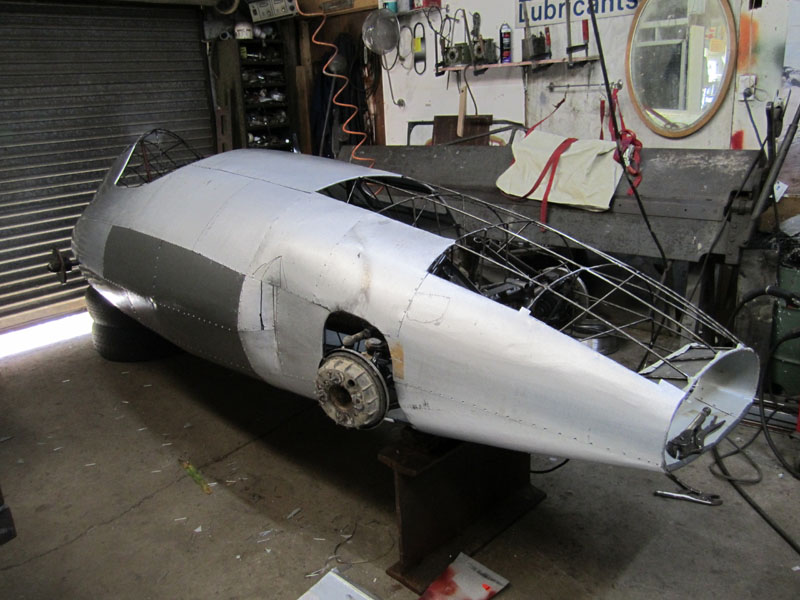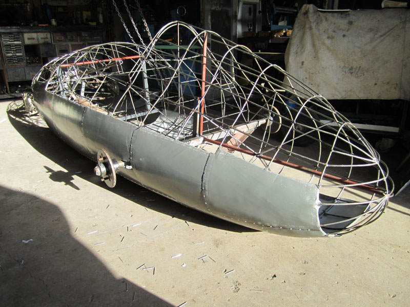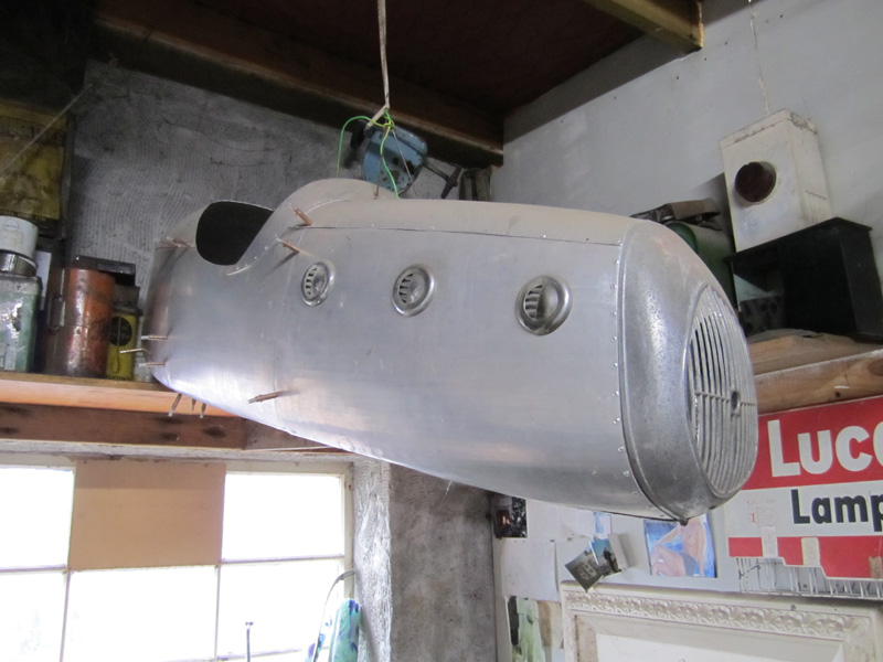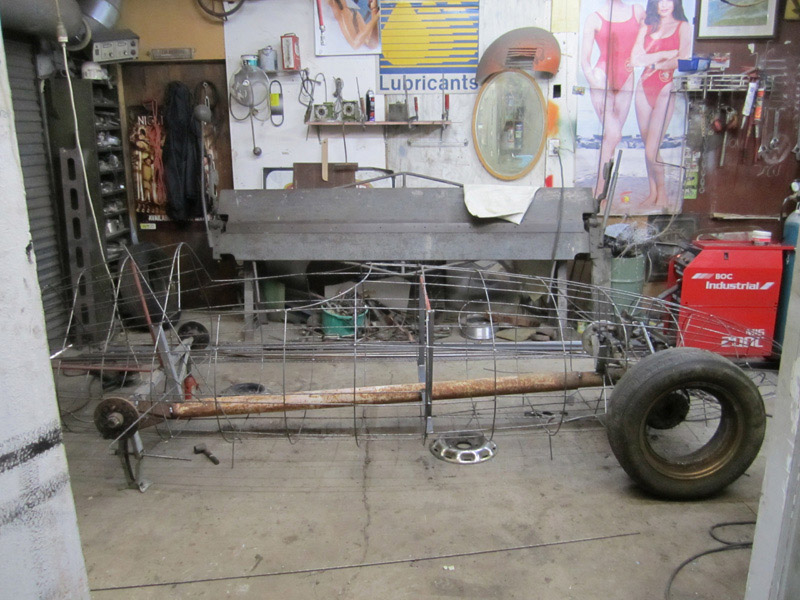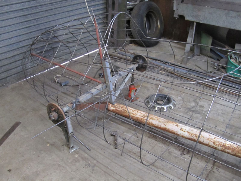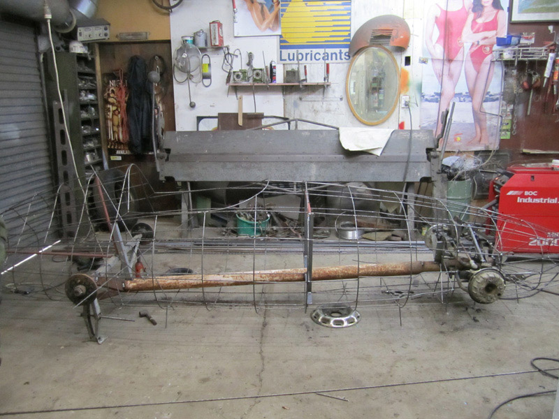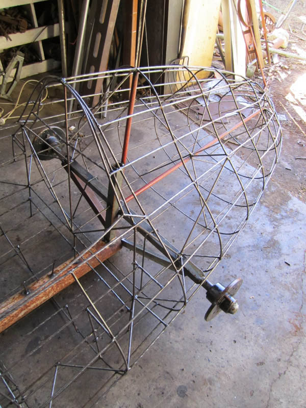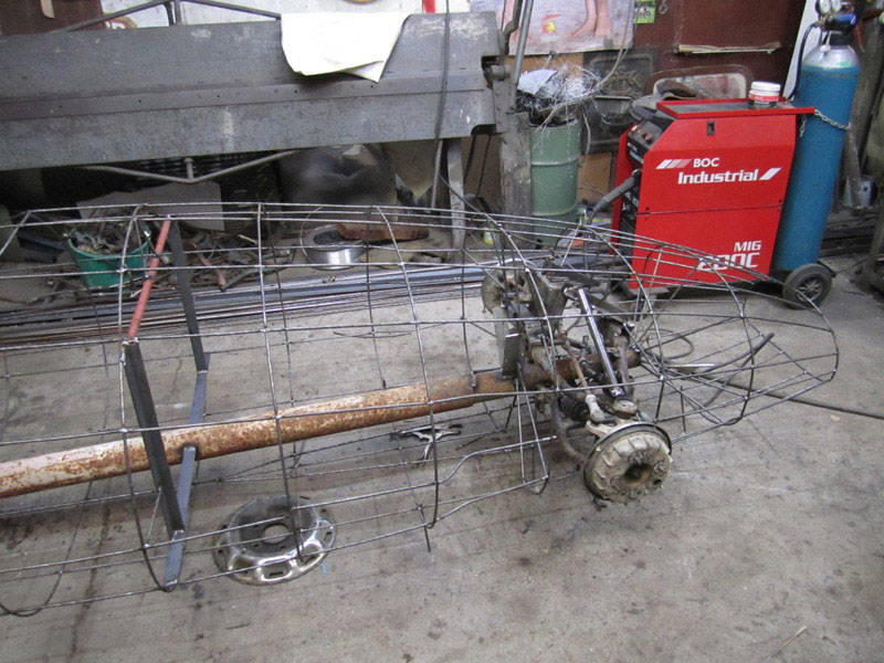I never saw the Spitfire, he sold it not long after he'd finished making it. These are pics he took of it. The 44 gallon drum propping it up gives an idea of its size.