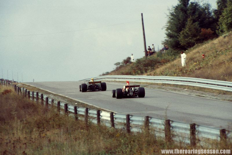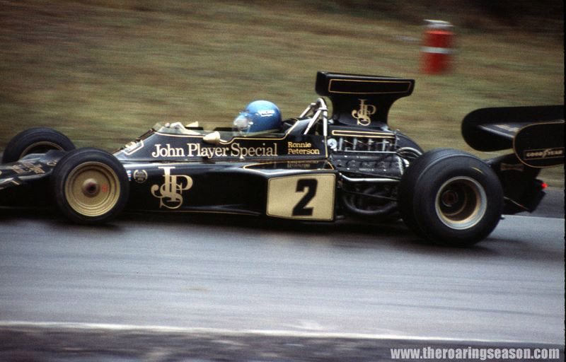 In the early wet laps, Lauda completely dominated, but it wasn't to last. The rain stopped and the track dried, and his wet weather tyres went off. From lap 23, car after car headed to the pits for dry tyres, and the confusion completely mixed up the lap scorers. Then a collision between Jody Schecker and Francois Cevert brought about the Safety Car for the first time in F1, as Cevert's Tyrrell was partially blocking the track. But nobody was sure who was leading! Safety Car driver Eppie Wietzes picked up ISO driver Howden Ganley as the race leader, and once the wreckage was cleared and the race underway once more, it was Lotus driver Emerson Fittipaldi who soon took control, and Colin Chapman threw his cap in the air as the Bazilian crossed the line for what many thought was the victory. However, the man holding the chequered flag waved it as Revson went by!