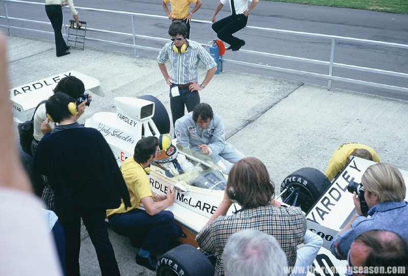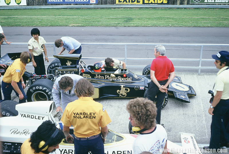 "I had the 'awful' task of taking some transmission parts to Sid Taylor from our Trojan shop to be put in Jody Scheckter's F5000 T101 before it was sent to the States. That let me in so I could watch from above the McLaren (for whom Scheckter was driving this weekend) pit while the action went on below. I only had a 24 capacity 35 mm film in my camera so I tried to make the most of what I could".
