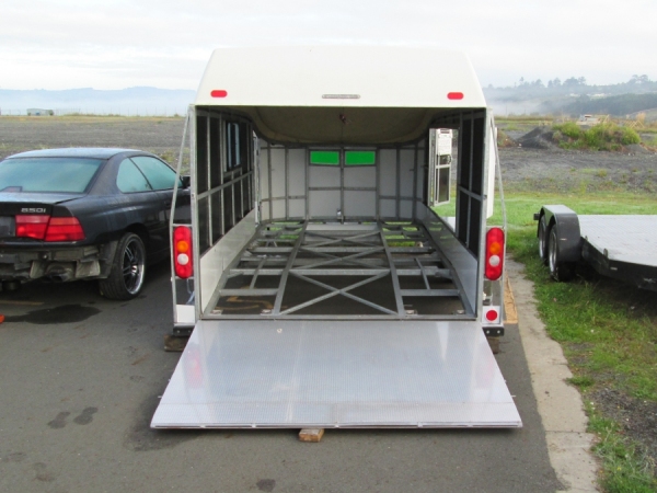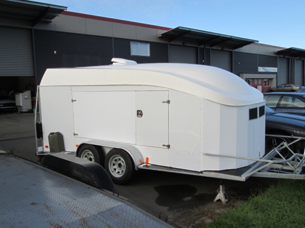Low drag, aerodynamic design, covered car transporter. Strong, lightweight, and fitted with Duratorque suspension.