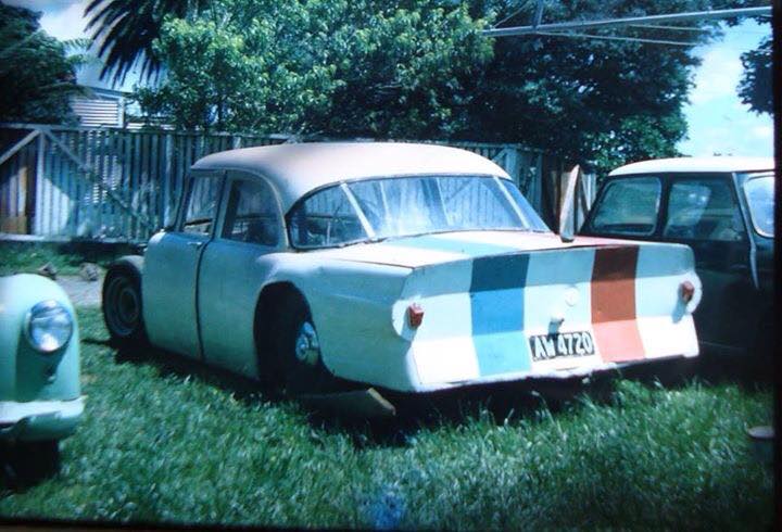 Nik explains: "The custaxie at Croydon Thompson's place in Onehunga before I bought it from him (photo courtesy of Bruce Greer). Sat on my mums front lawn in South Auckland for ages before I sold it just prior to moving to North America. Car was painted purple when I bought it from Croydon".
