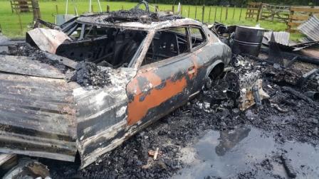 Makes you cry doesn't it. I have no idea about the insurance implications but the car is destroyed and judging the pic, the engine was probably alongside the car and has also been destroyed. I'm not sure about his other race car and whether or not that was also involved, but I'm guessing it might have been elsewhere at the time as there are no pics of that one.