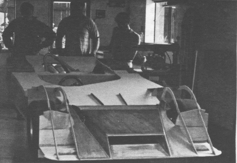 The most amazing thing about this car was its engine - a 1500cc V4 Johnson outboard motor. This was tilted at 40 degrees from the horizontal and had a huge(!) Smith built flywheel that was 100 mm in diameter. The powerband of this motor was between 1000 and 7000 RPM - the car could wheelspin in top gear which, incidentally, was a 3 speed Renault gearbox.