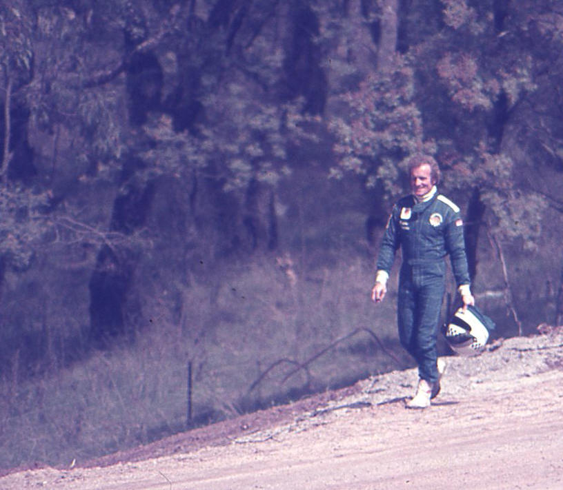 Graeme Lawrence walking away after the Falcon he shared with Murray Carter broke its crank on lap75.