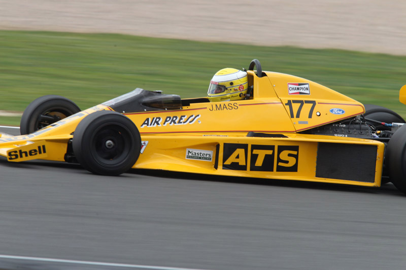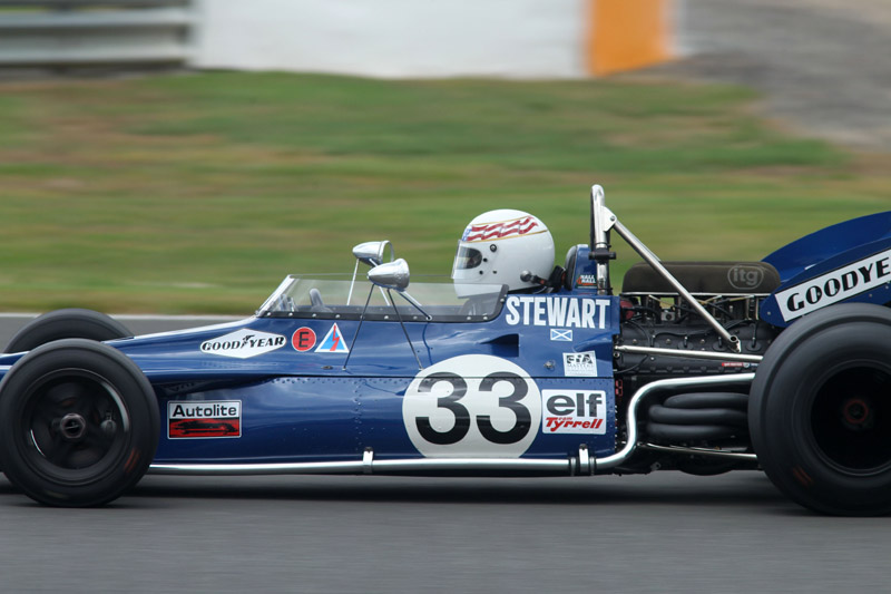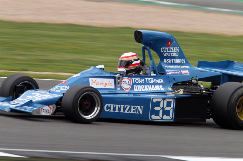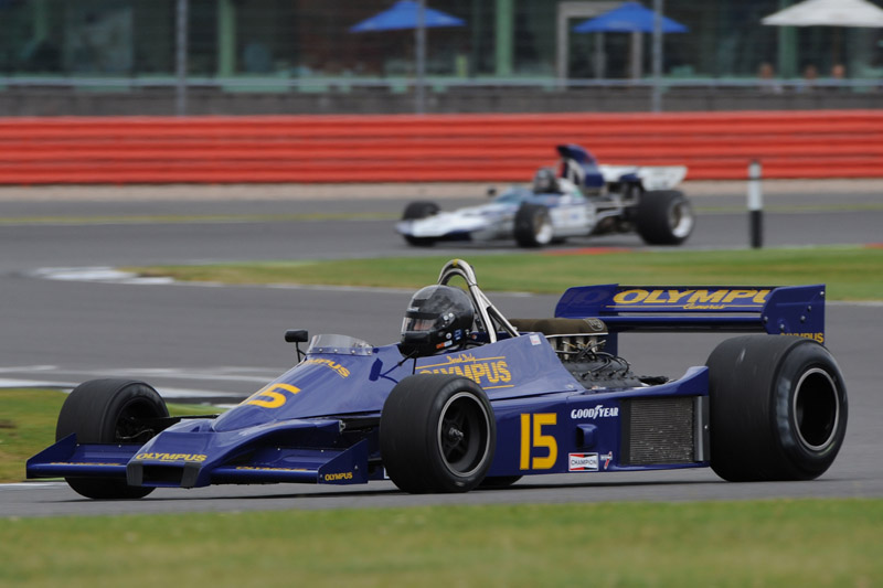Martin Stretton, who struggled to get heat into his tyres in qualifying, fell back to fifth in the ex-Michele Alboreto Tyrrell 012. Ahead of him, Hancock was under pressure from the fast-starting Loic Deman, the earlier Tyrrell 010 up from seventh to third on the first lap. The Belgian made a bold but necessary move up the inside going into Copse as the iconic black and gold Lotus 91/5 of Gregory Thornton was catching them both. The Fittipaldi fell back down the field, but took the victory in the pre ’78 class.