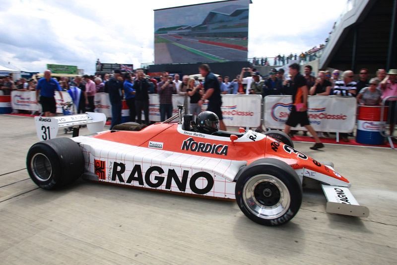 The pair of 25-minute FIA Masters Historic Formula One races are always two of the big draws at the Classic. The huge crowd was treated to the spectacle of a rolling start for 29 DFV-engined Formula One cars from the late 70s and early 80s.