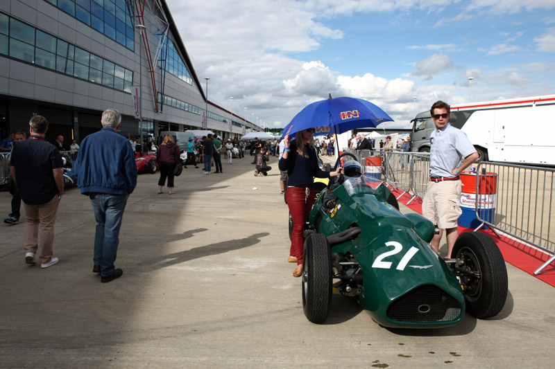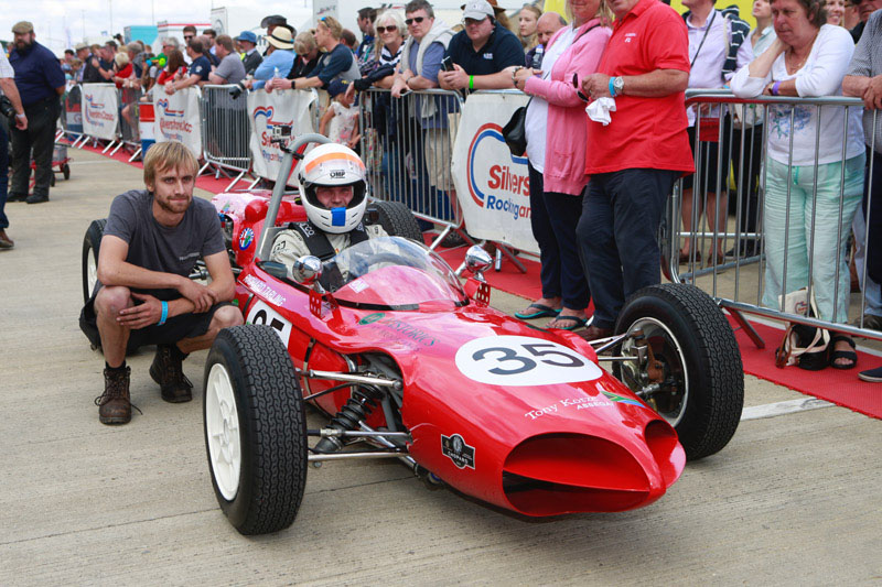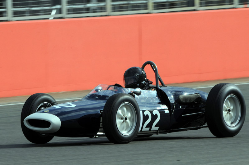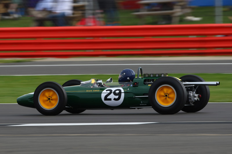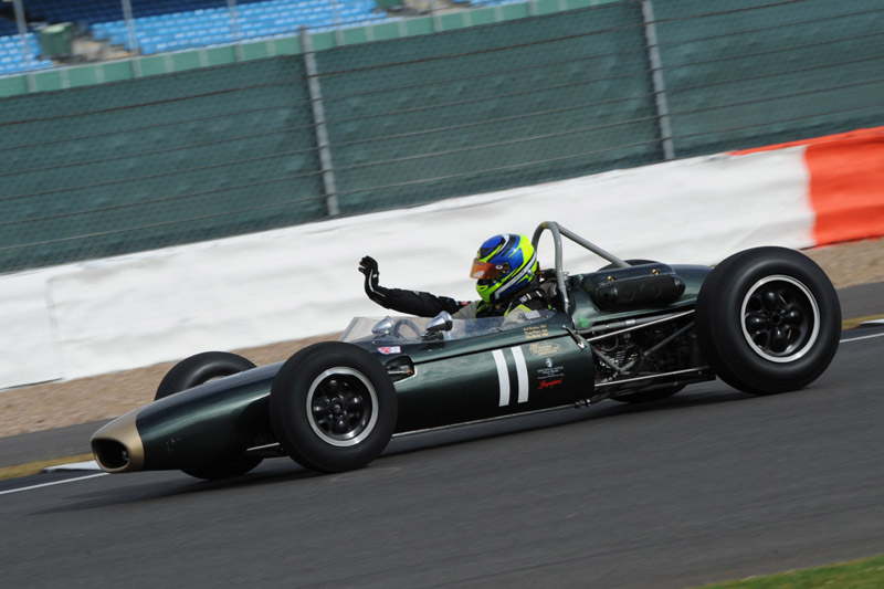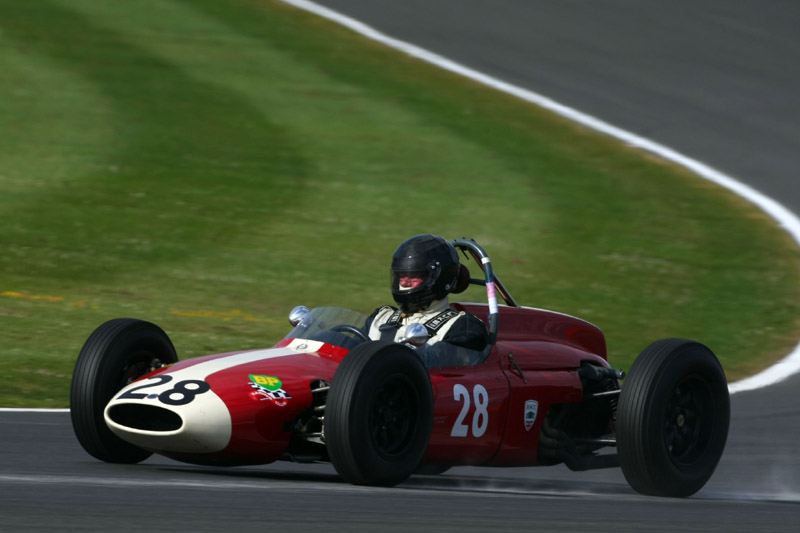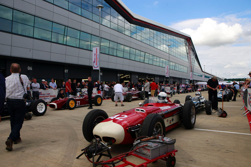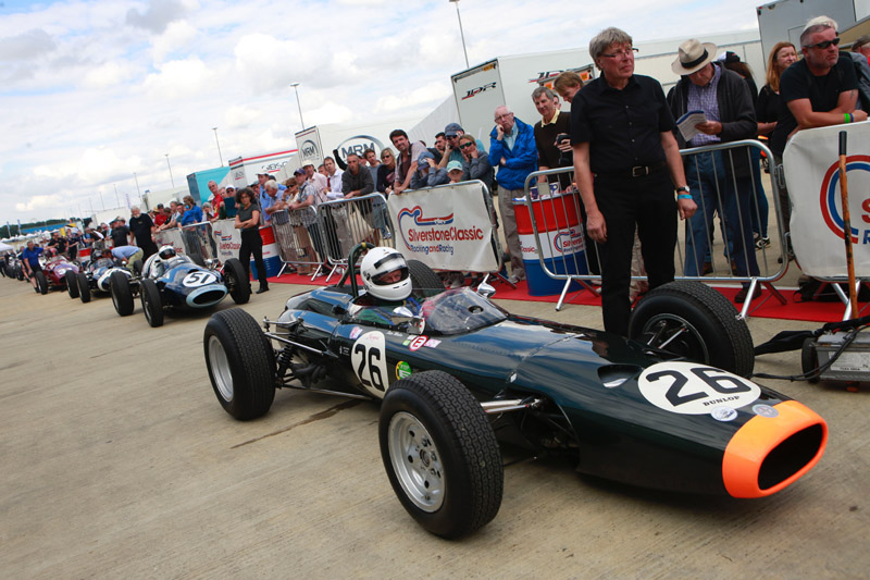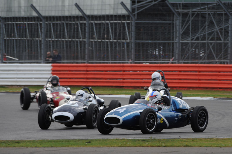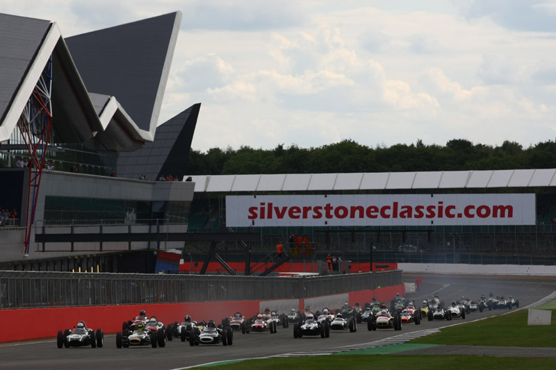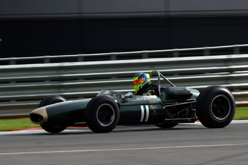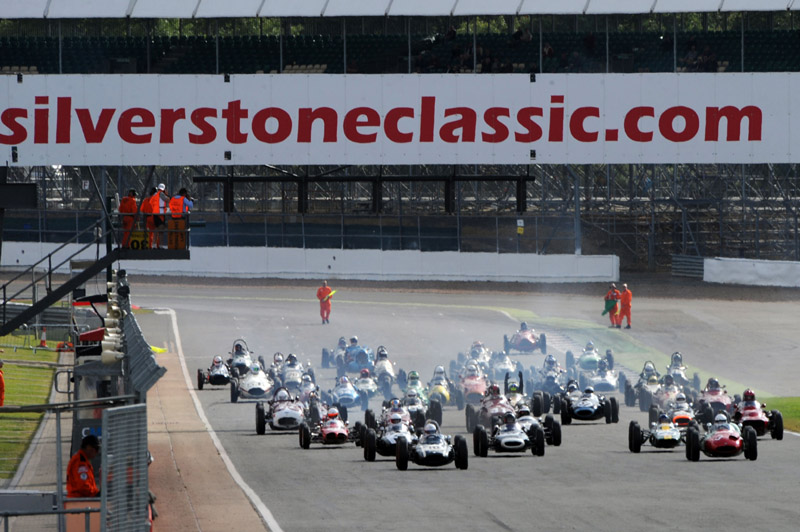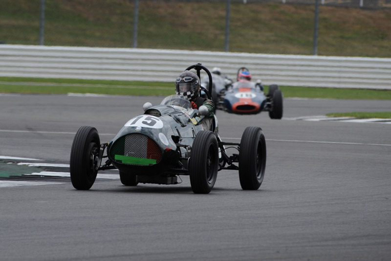48 fantastic Grand Prix cars dating between 1937 and 1964 took the flag at the start of this race, with third-placed qualifier Jon Fairley leading as the field went through Abbey. Pole-sitter Will Nuthall soon put the Brabham BT11 under pressure, his older 1960 Cooper T53 harrying the 1964 machine.