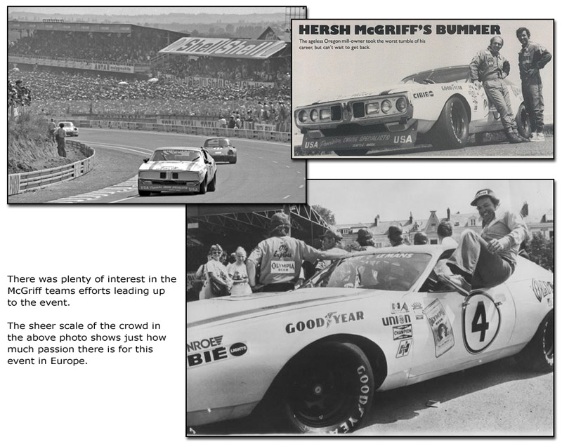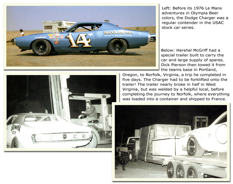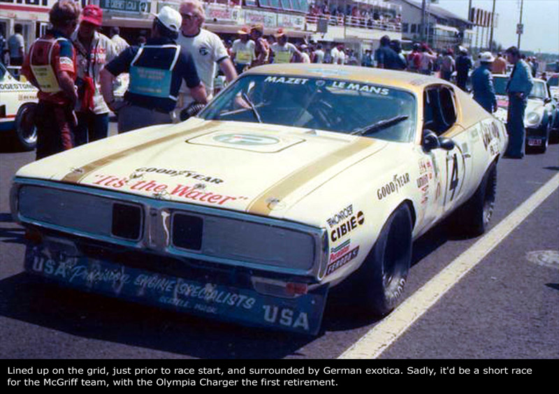 The McGriff team had never intended to bring the Charger to France. They were going to bring the Nova, which had been purchased as the Chargers replacement in late 1975. However, it was involved in a bad wreck not long after Daytona, so the Dodge was re-purchased, and prepared for Le Mans.