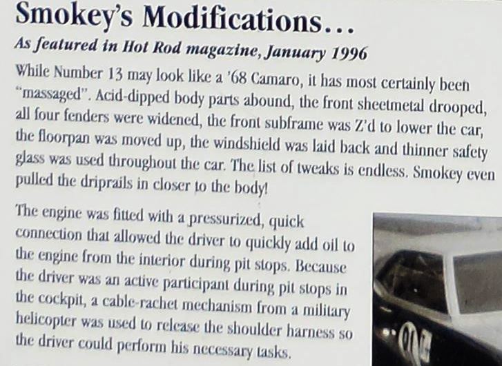 When I was at Laguna Seca I came across two cars that had been modified by the well known character, Smokey Yunick.
