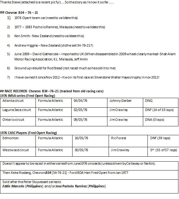 I recently received an email from Andrew Huxtable in the UK, with the following request regarding the Chevron B34 driven by Keke Rosberg in the 1977 New Zealand Formula Pacific international races: