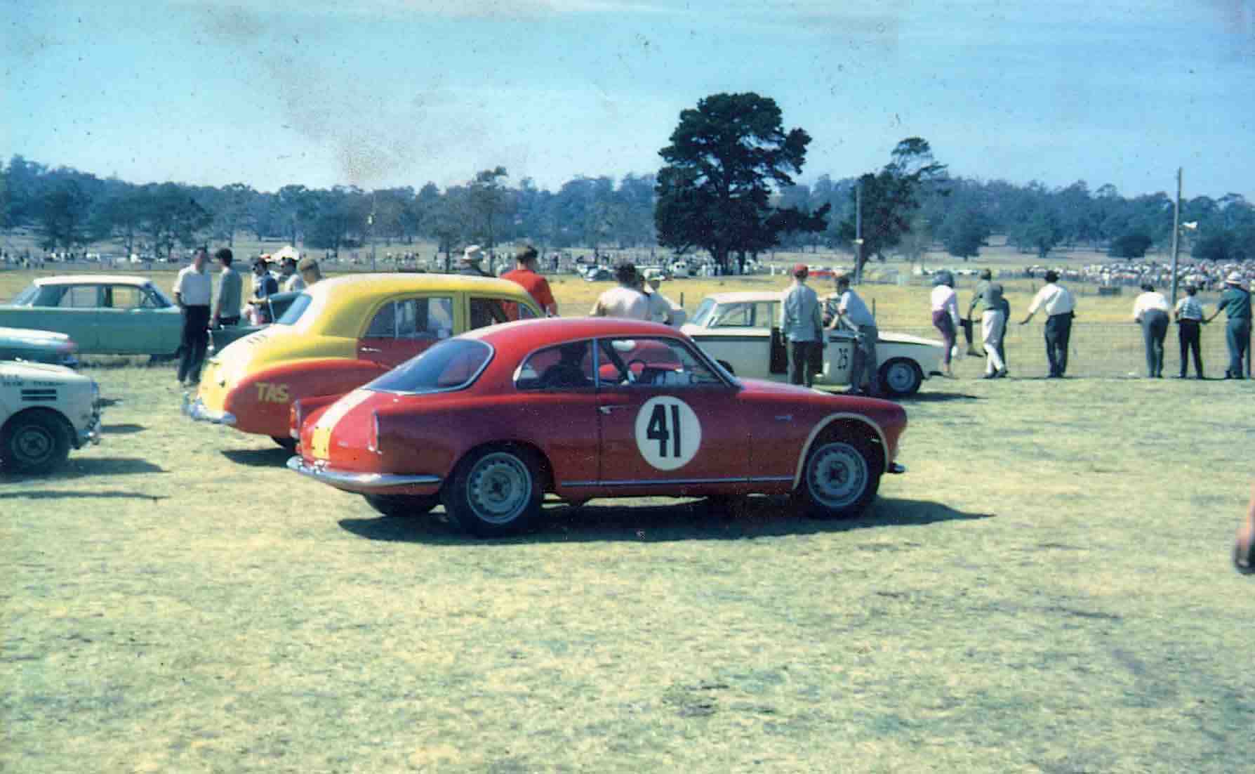 I'm trying to identify a gap in the ownership of my 1963 Alfa Giulia Sprint 1600 coupe (= Giulietta body + Giulia 1600 mechanicals). The car was delivered to K N Rudd Ltd (Ken Rudd - Ruddspeed - big Healeys, AC Aces, Alfas, Astons) in the UK in February 1963 and sometime after came to Australia, supposedly as a Mildren import. Earliest verified Australian record I have is a receipt for sale on 8 November 1966 from Geoghegan & Sons, Ashfield. At that stage the car carried registration no. EFP164 (probably a 1966 issue number) and was painted blue (pic below isn't accurate colour). Brian Foley owned the car early-mid 1970s and painted it silver. The second pic (provided by Brian) shows the car & him at Amaroo Park, circa 1975. As far as I know the car has no competition history apart from when I ran it in a couple of hill climbs 1n 2007.