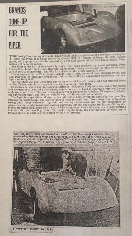 The car is a Piper GT Sports racer that Ross was said to have taken home with him from the uk.