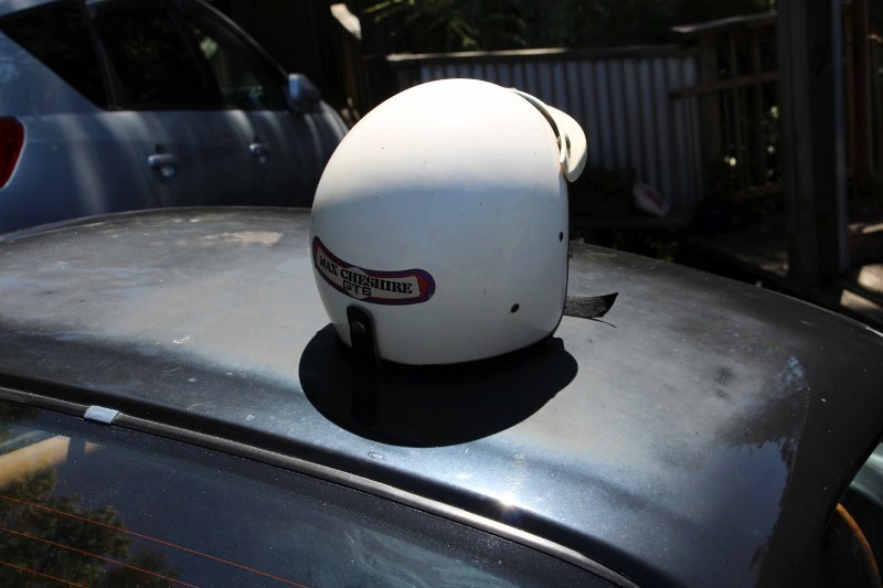 My old 1971 issue NZ standard Crash Helmet, that was used 1971 to 1983. It is now hanging up in the garage probably cannot be used as complied to NZS at the time