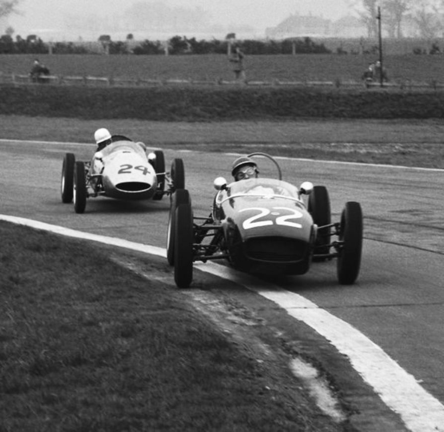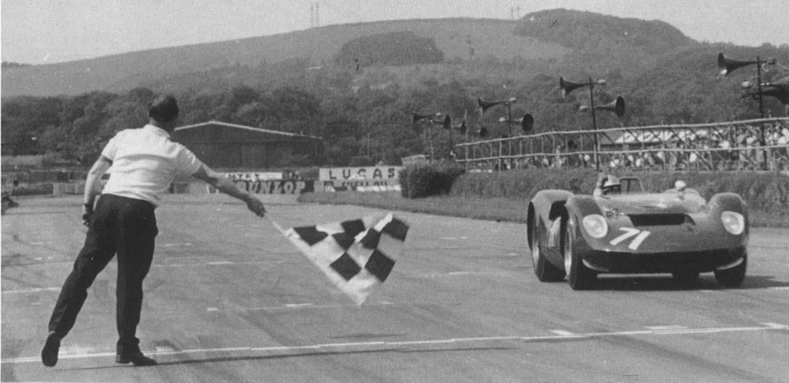 Uncle Jack's plane hit the power lines seen the distance on the hill about 5 miles to the right of this photo at Goodwood, which shows John Coundley winning the Whitsun Trophy Race on June 6 1965 in one of the first McLaren Elva Mk 1 Olds. # 71.