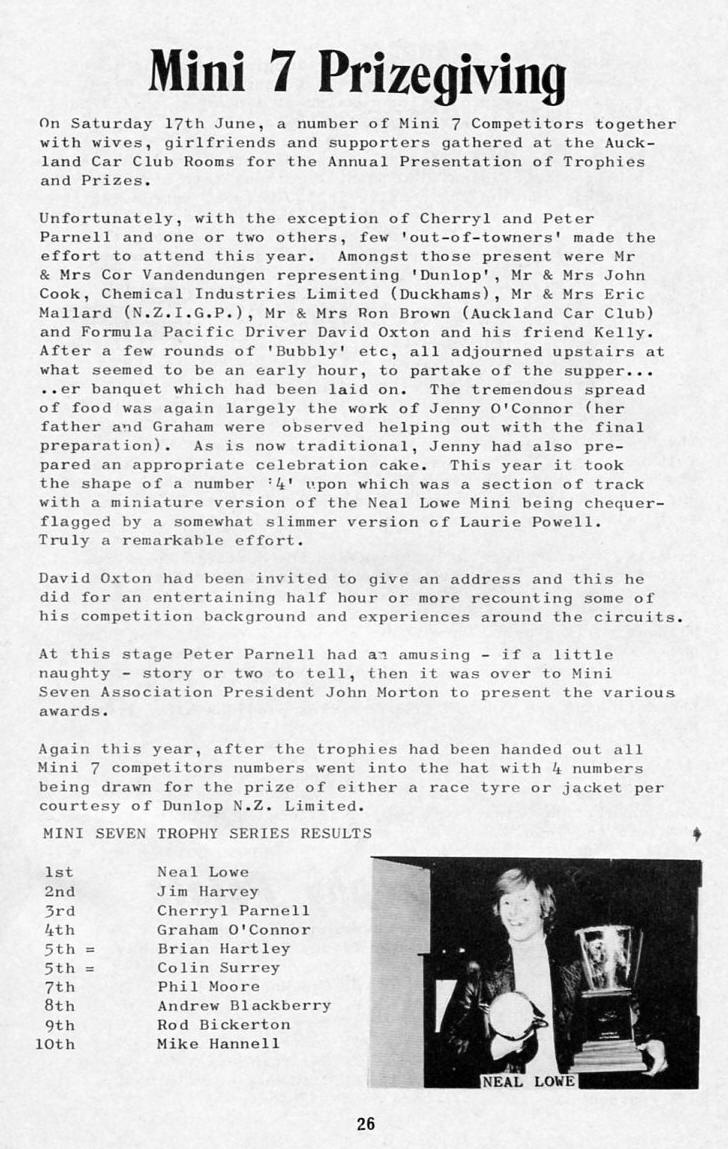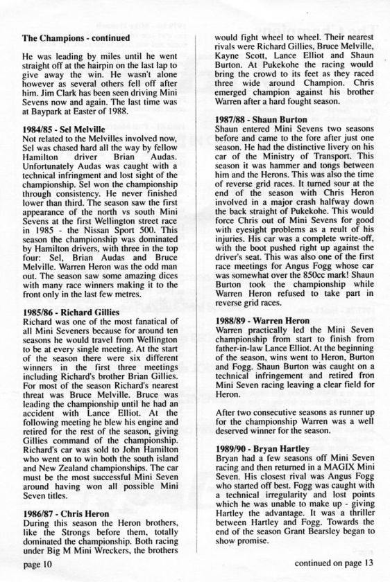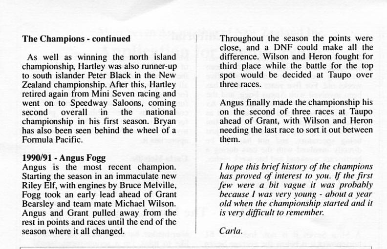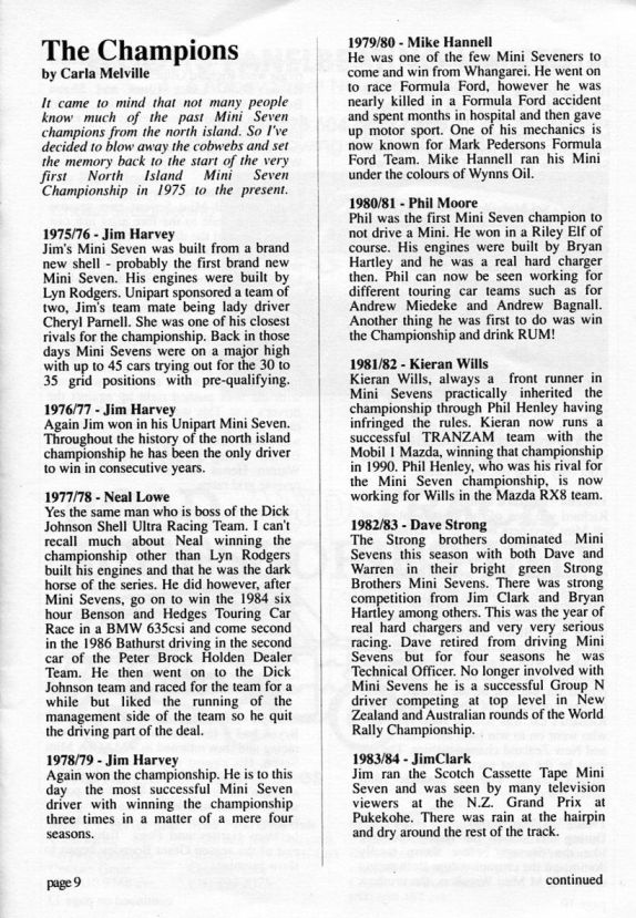 Found this summary of the early Mini 7 Champions in the Mini 7 News dated August 1991. It was penned by Carla Melville.