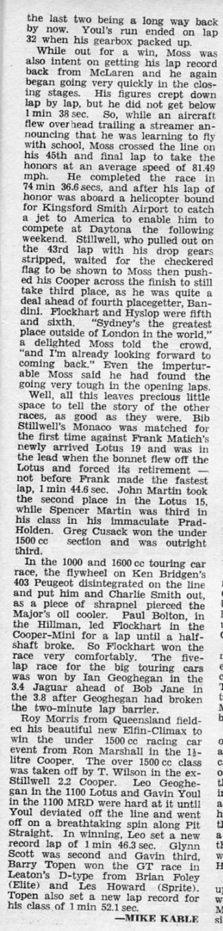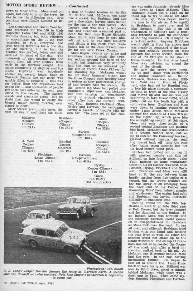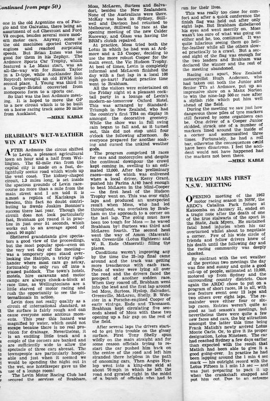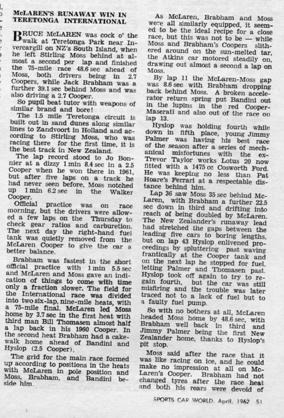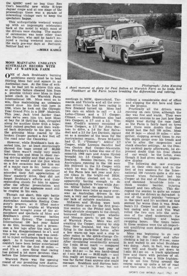 David and Nick are wanting to gather as much history on the car as possible, particularly its time spent down-under. As can be seen below, the Cooper is believed to have raced in New Zealand and Australia during the 1961/62 Tasman Series. However, whats not totally clear is who drove it. This is from David:
