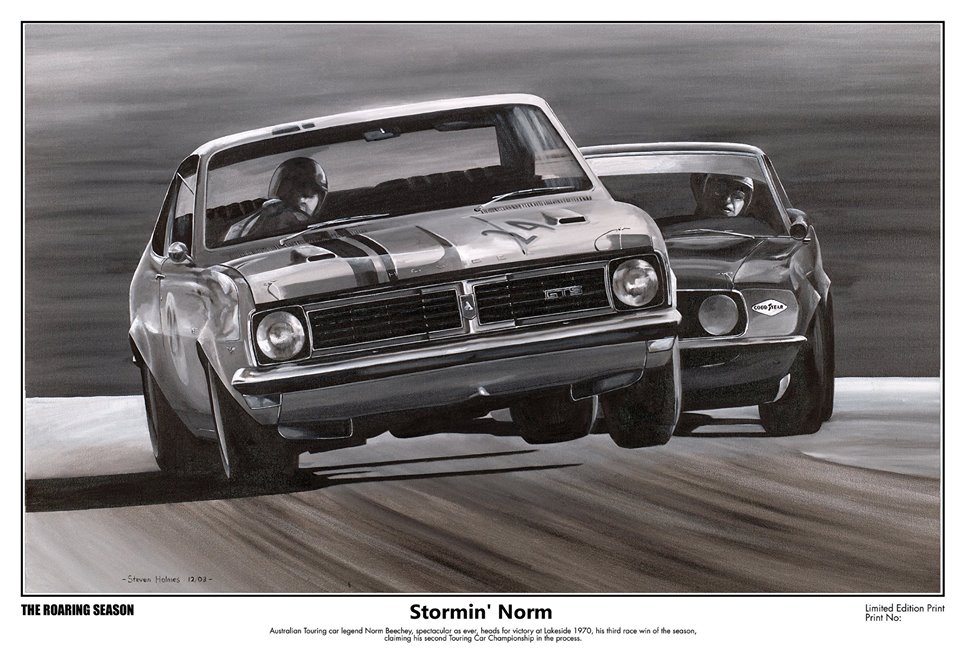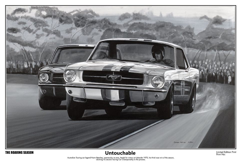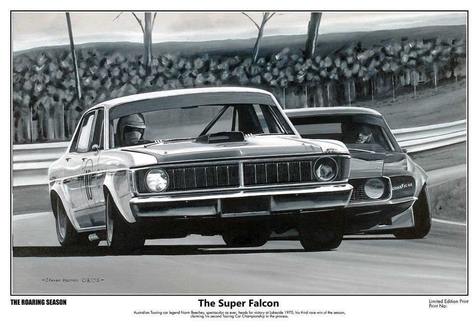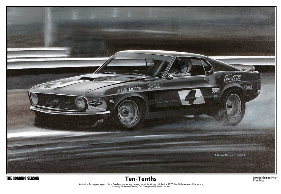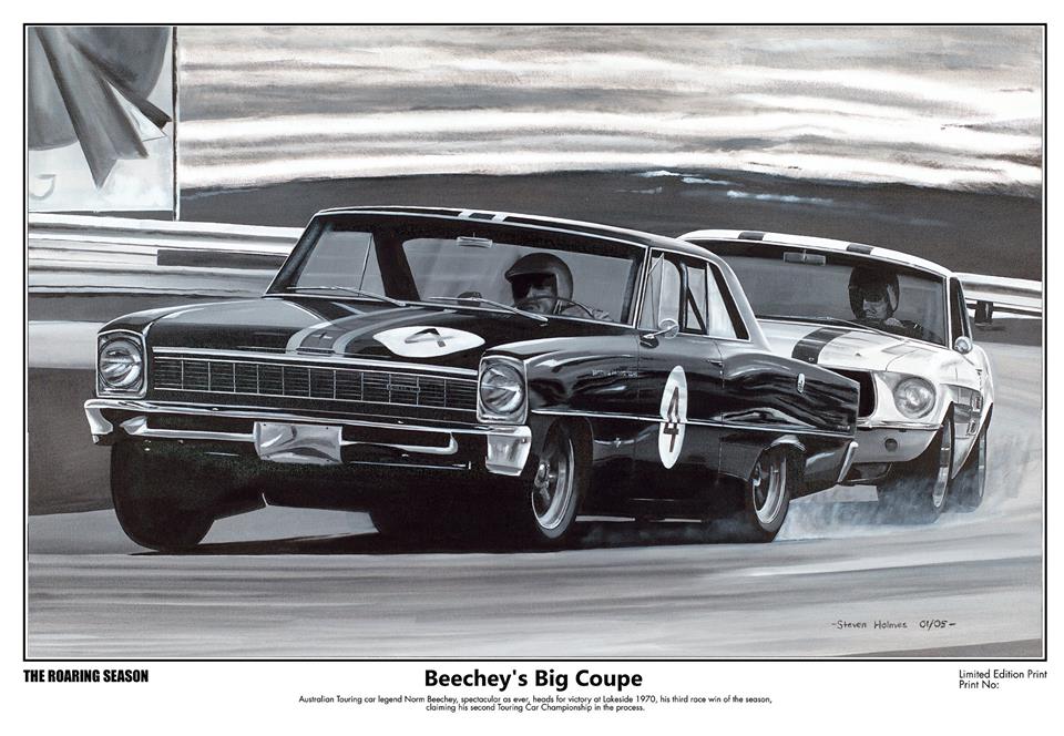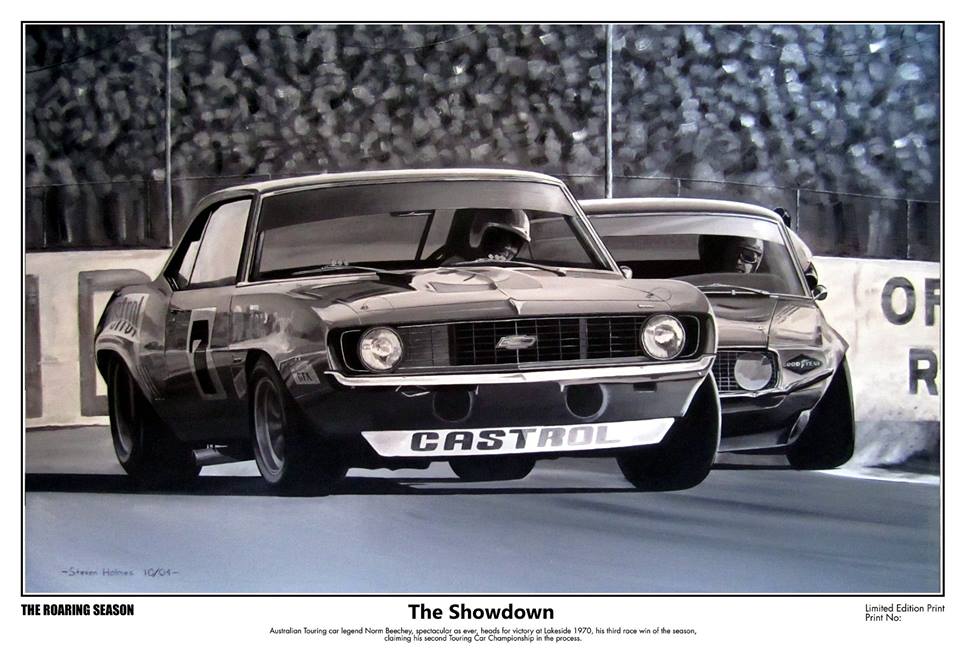 The paintings were all based on significant cars from the Australian Improved Production era of the ATCC, and included Bob Jane's ZL1 Camaro, Pete Geoghegan's '65 Mustang and Super Falcon, Norm Beechey's Nova and HT Monaro, and Allan Moffat's Kar-Kraft Mustang.
