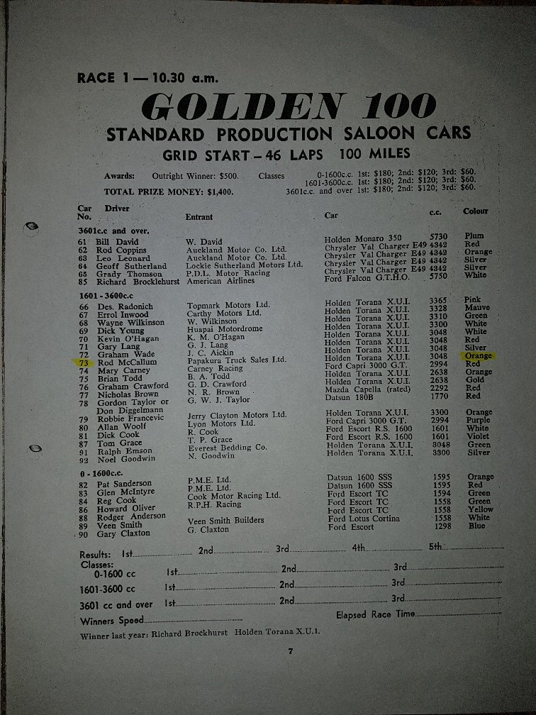 I have recently purchased the Ex Richard Brockelhurst, Rod McCallum, Bob Homewood, Grahram Crawford LC Torana GTR XU1 Rego FV6684.