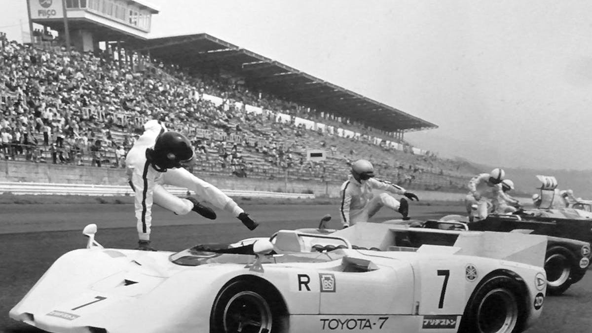 When Group 7 was introduced in 1968, Nissan/Price, and Toyota (in partnership with Yamaha) set about building new cars. The Nissan was the more impressive. Although intended to be fitted with its own V12 engine, delays in its development forced the company to fit its impressive new R381 with a small block Chevrolet V8. The Toyota/Yamaha model, however, was far more modest, more dated, and looked somewhat like an old Lola T70, itself a design already several years old. Its crowning glory was a beautifully designed and constructed 3 litre quad-cam V8 engine, created by Yamaha for Toyota, specifically for Group 7 competition.