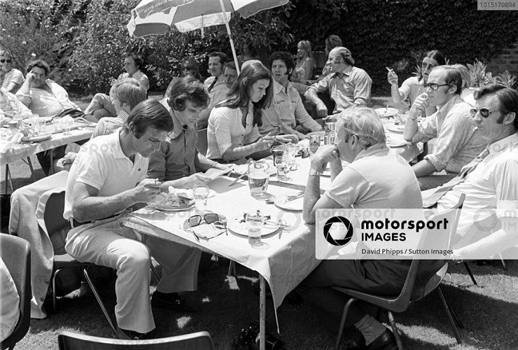 First is Graham Hill, wife Betty, Colin Chapman. Then James Hunt and Others. You, the readers might know.