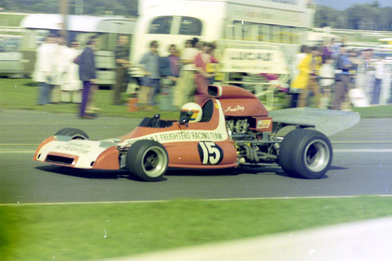 In qualifying on the high-speed Silverstone layout, the Begg’s nose began to crack from the heavy loads being applied to it. The team attached sections of aluminium to add strength, and Oxton went out and qualified twelfth fastest. In the race, held on Saturday, despite the tyres not working as he would have liked, Oxton climbed right through the field to finish an impressive fifth, behind three of the latest Lola T330s, and a Chevron B24. Understandably, the tiny New Zealand team were overjoyed.