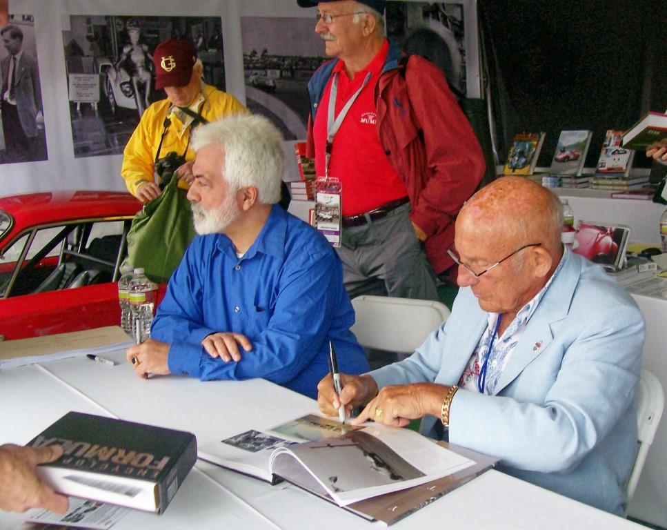 Stirling Moss attended and had a book and autograph signing session alongside Jay Leno. I lined up with some old scrapbook material regarding the 1962 NZGP at Ardmore. Stirling took a great interest in it and signed almost everything I showed him. We had to be ushered apart so others could meet him !
