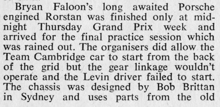 In chatting with Bob Britton (Rennmax) today he told me that the Bay of Plenty Times had a front-page picture of him working on the Rennmax he'd built for Feo Stanton - the car which began as the Rorstan Climax and became the Rorstan-Porsche.