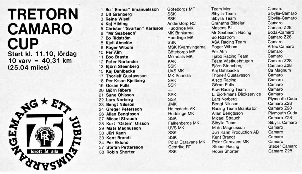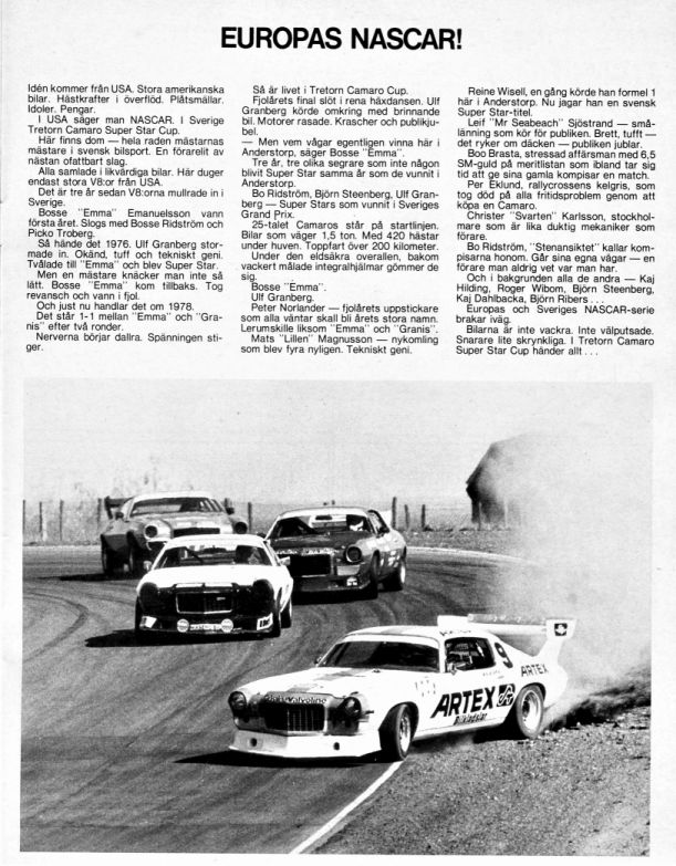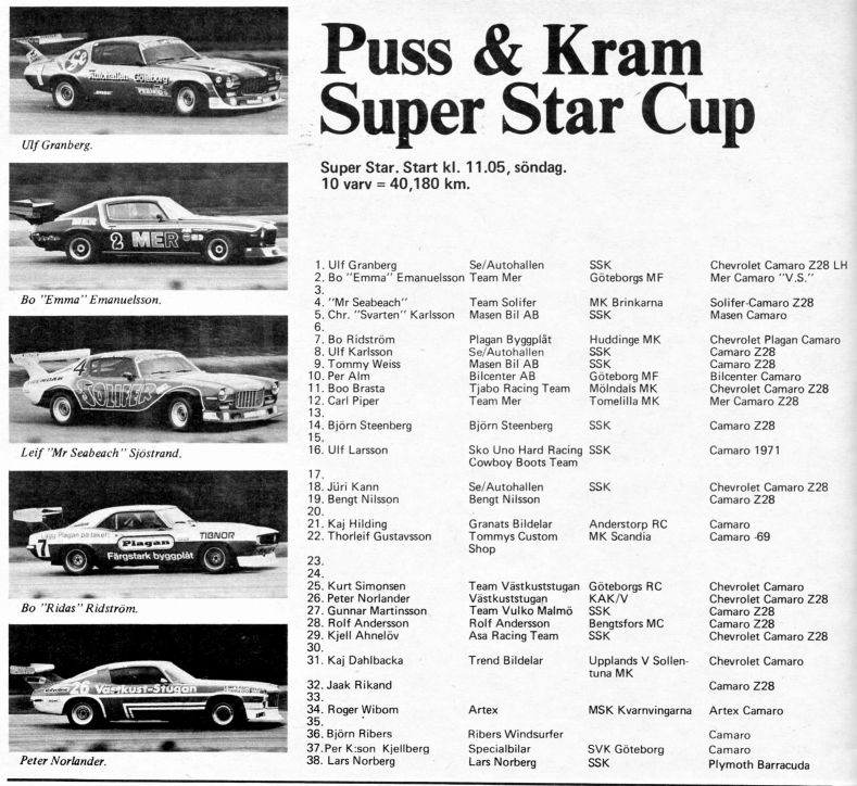 In the programmes for the 1977 and '78 Swedish Grand Prix meetings there are details of a series for Camaros.