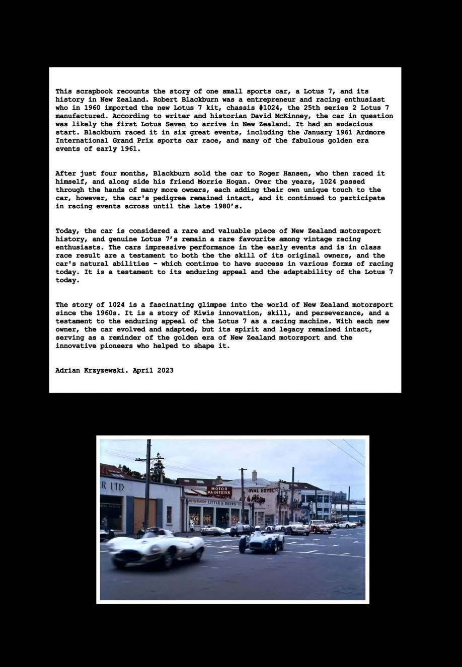 Story hasn't progressed yet but recently Adrian Krzyzewski posted a couple of photos of the car - one from Dunedin in 1961 and the other when he purchased it in 2022.