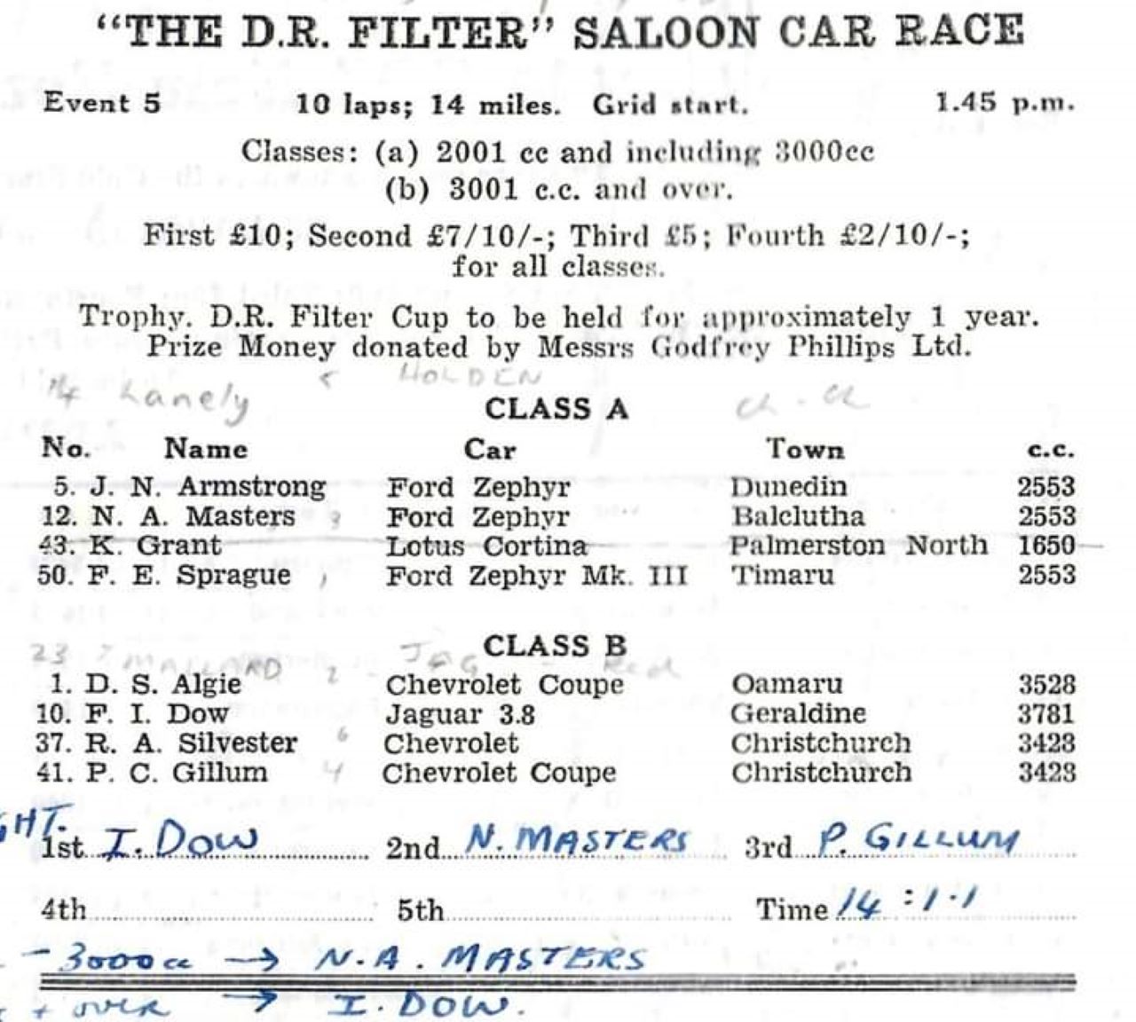 The name was " De Reszke " and indeed as mentioned they sponsored Motor Race meetings and races. usually using the DR name and " DR Filters BEST ".. here another photo from Waimate, in 1963 - the start of the Main Race with the DR banner above. a Graham Woods archive picture and as he would say NMP - " not my picture "