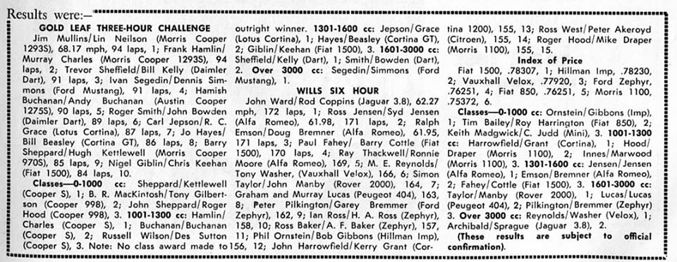 Results of the Wills Gold Leaf meeting in October 1965. - Milan Fistonic archives - from " Motorman " magazine