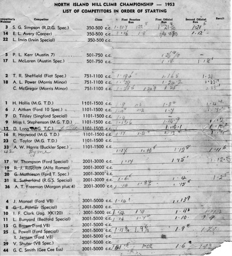 Trevor was a keen racing driver and a Member of both Northern Sports Car Club and Auckland Car Club from the early 1950's.