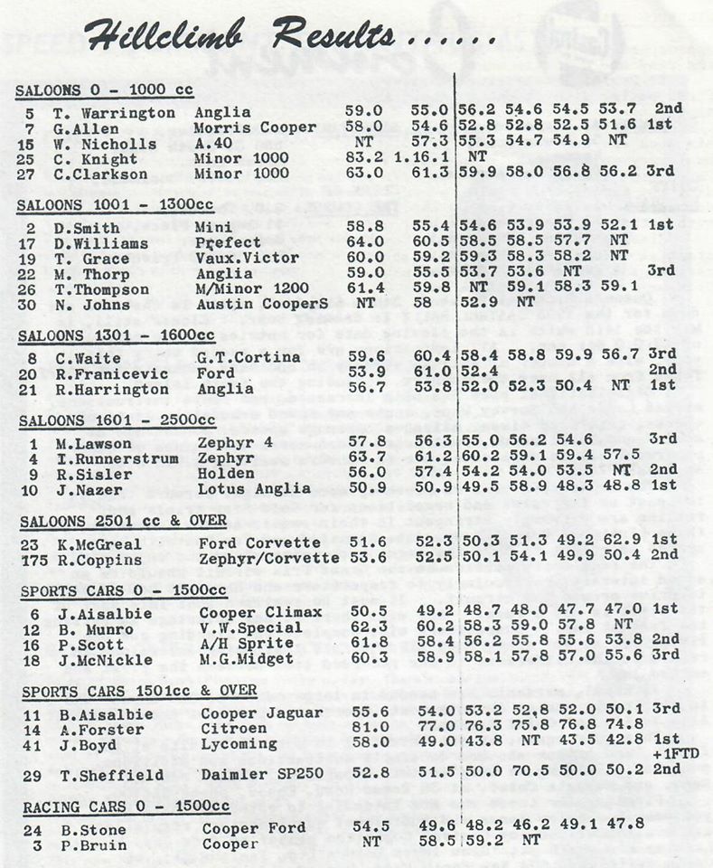 NSCC Hill Climb at Birdwood Road, Massey - the Road used by NSCC - not long before NSCC got to use Cosseys Farm for the first time in March 1967.