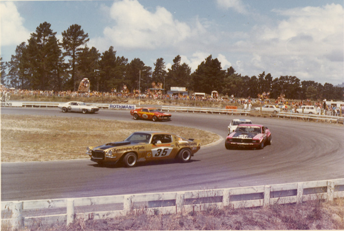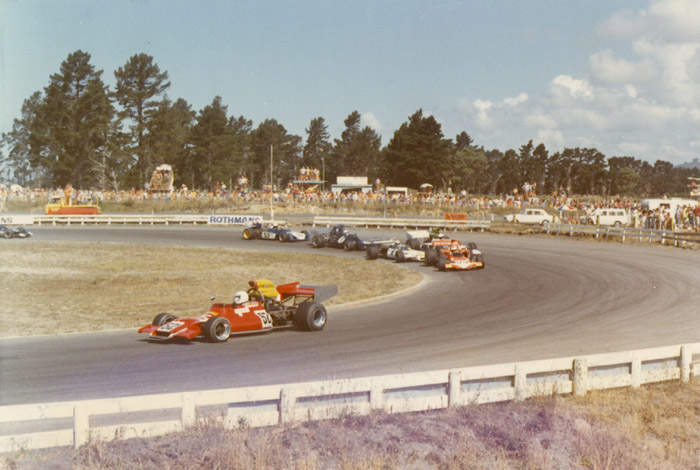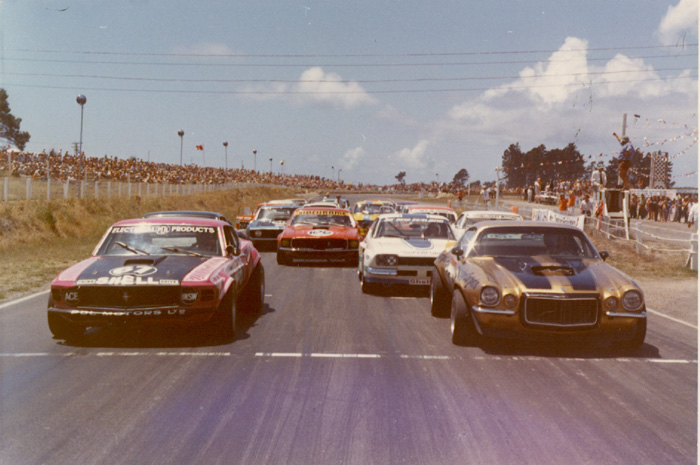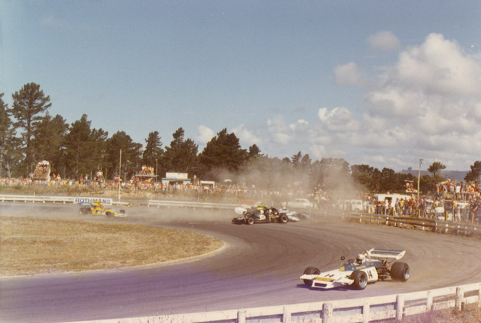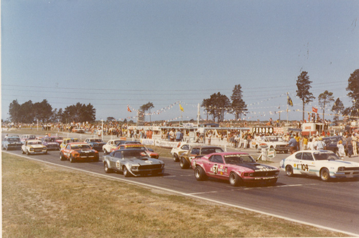 In an era where single seater racing was given preferential treatment, Bay Park promoted saloon car racing, and were responsible for importing several interesting tin-top teams each season, which proved a good draw card for the punters. But lets not forget, Bay Park was the first track in New Zealand to hold a race for Formula 5000 cars, even if there were only four of them at that 1968 event. And even these were a mixture of genuine early F5000s and converted USAC cars. But that mattered little. Their popularity, raw booming sound track, and apparent affordability saw to it that F5000 became the premier single seater category in New Zealand.