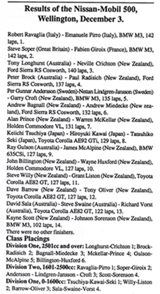 Nissan Mobil 500 Races - VHS videos and official results/entry lists