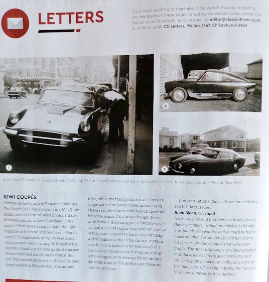The latest issue of New Zealand Classic Driver has a letter to the Editor about 3 of Ferris De Joux cars