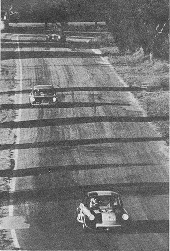 Stewart McClead 240K datsun about to be passed by Brian Ovendon's Charger