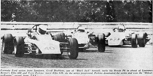 Geoff Brabham Bowen P6, Lawrence Bennet's Elfin 600,Terry Perkins Elfin 620